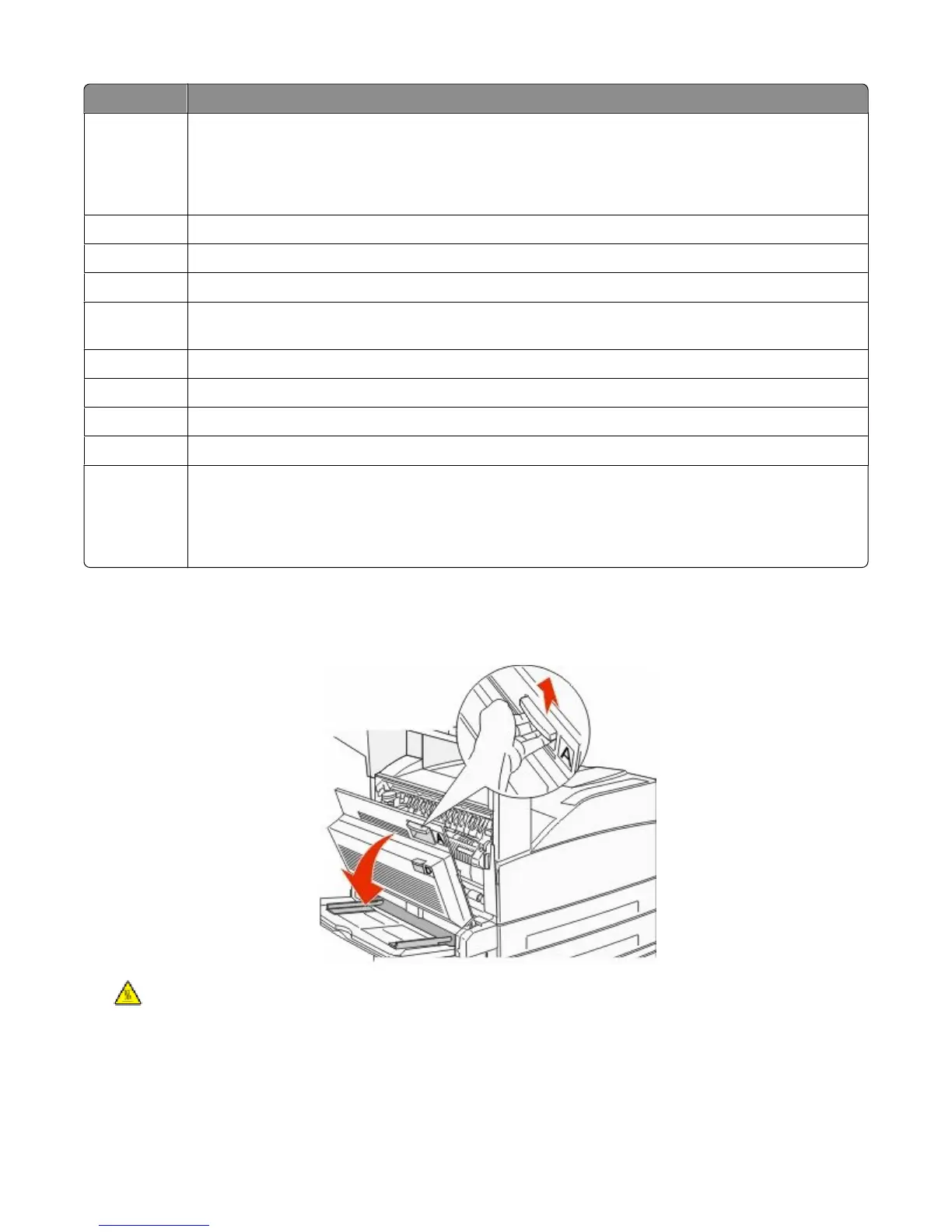 CAUTION—HOT SURFACE: The inside of the printer might be hot. To reduce the risk of injury from a hot