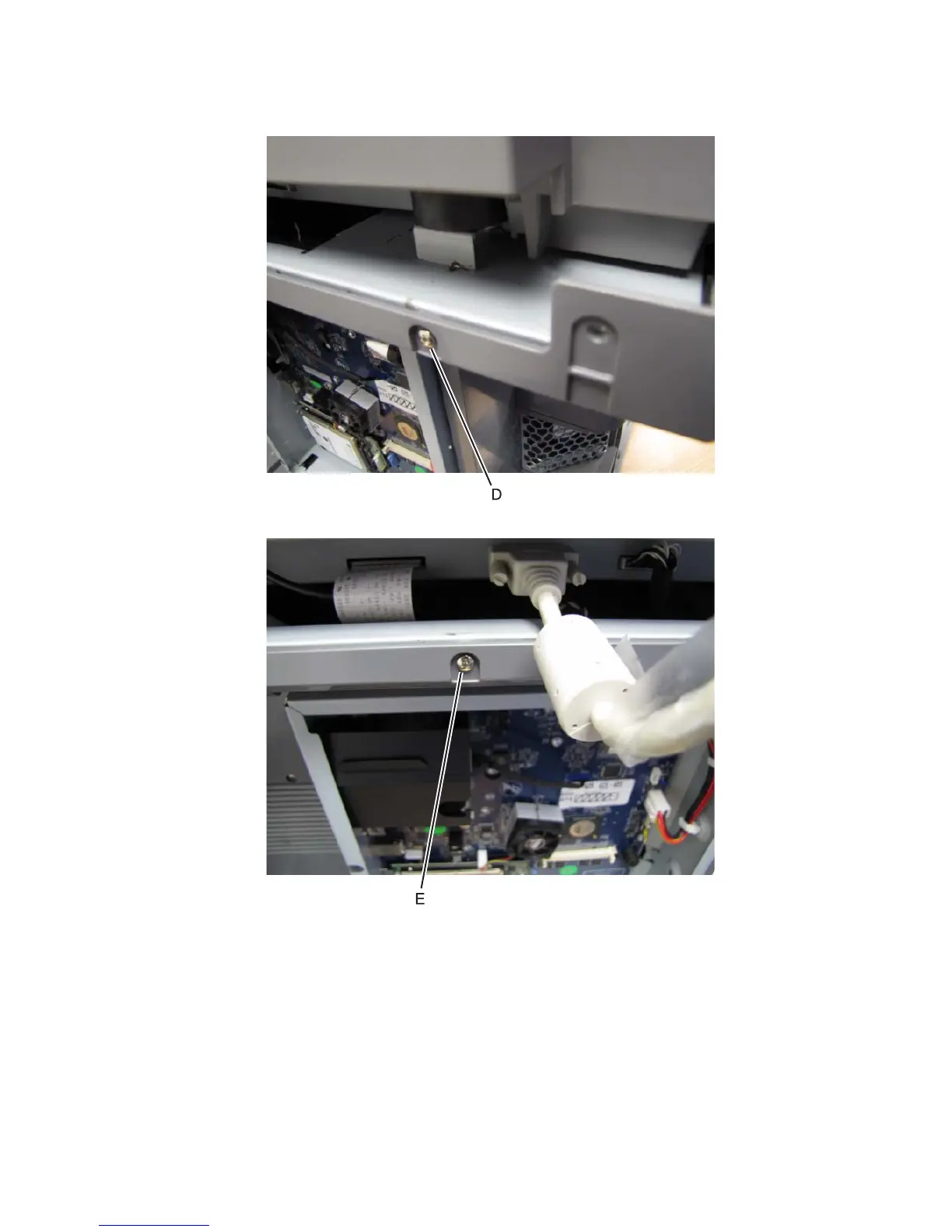 6. Remove the screw (E) in the top middle of the cover.