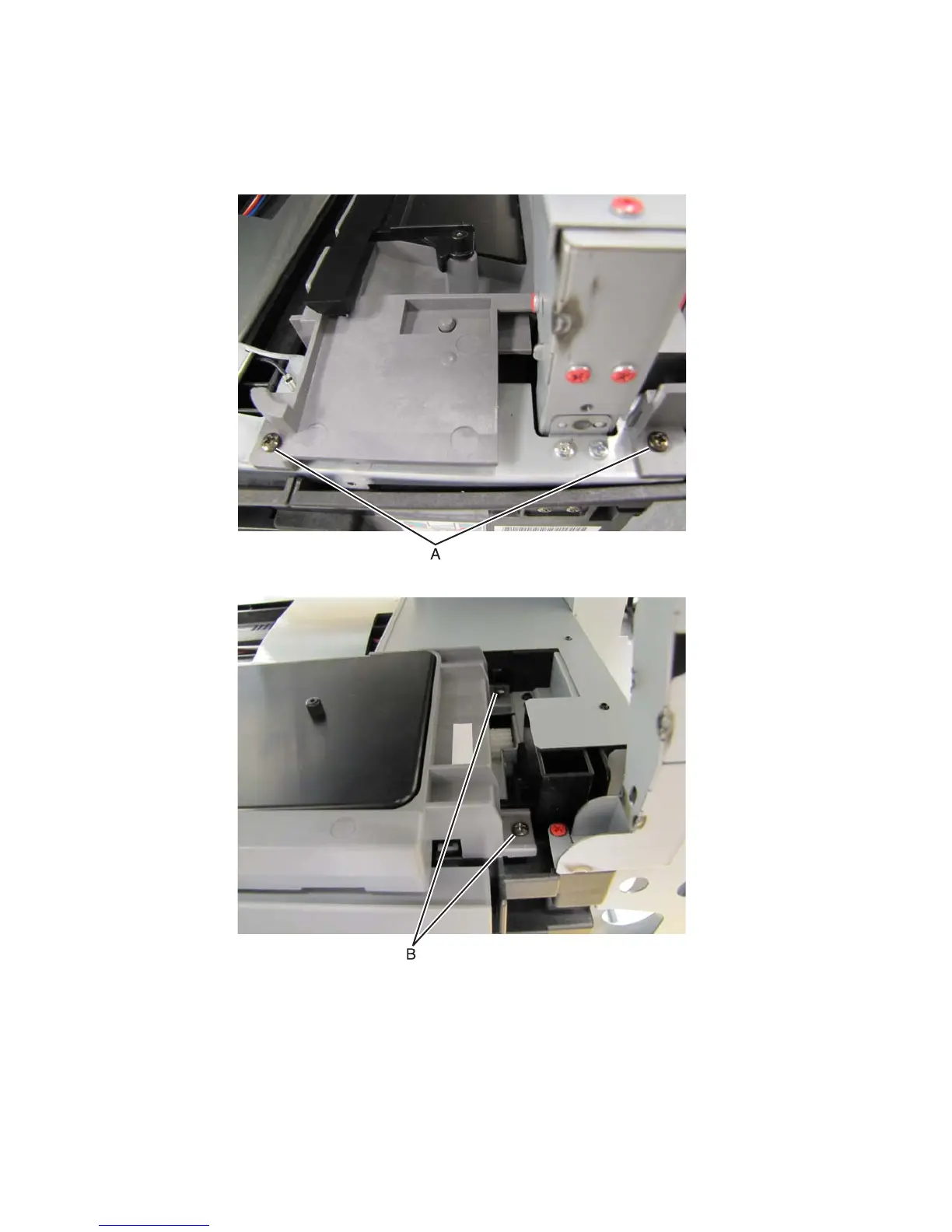 3. Remove the two screws (B) in the rear.