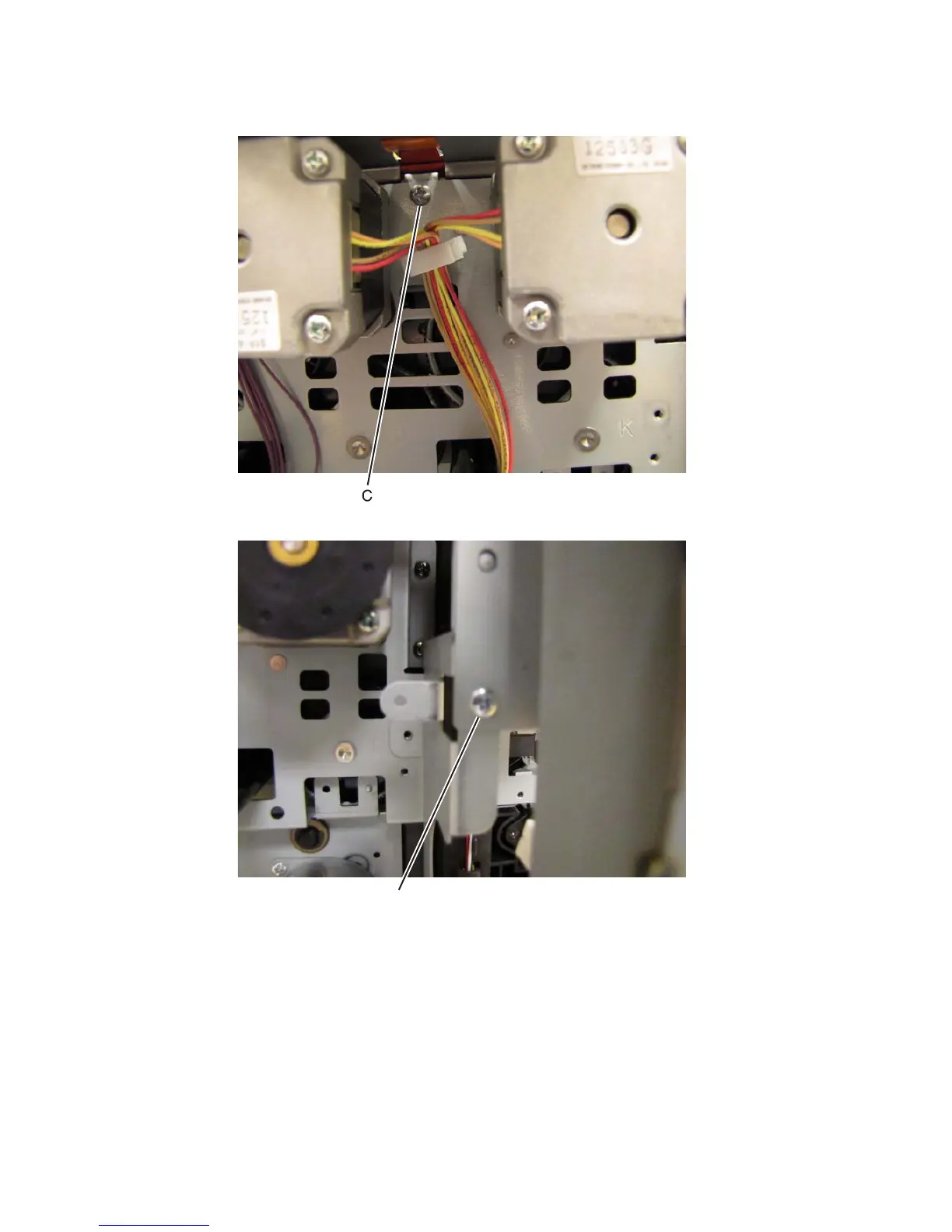 6. Remove the screw (C) between the two rightward motors.