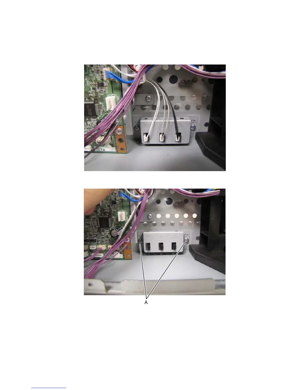 3. Remove the two screws (A) securing the sensor mount to the printer frame.