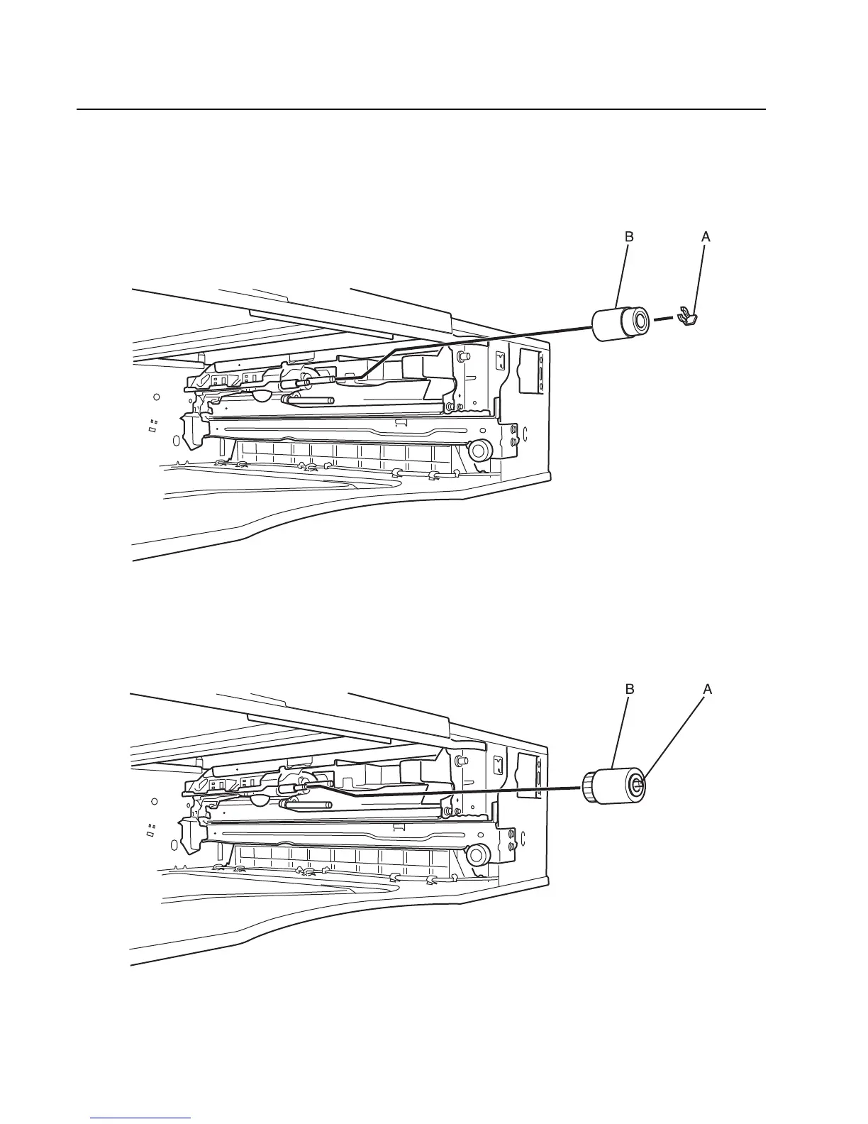 3. Slide the paper feed roll (B) off the shaft to remove it.