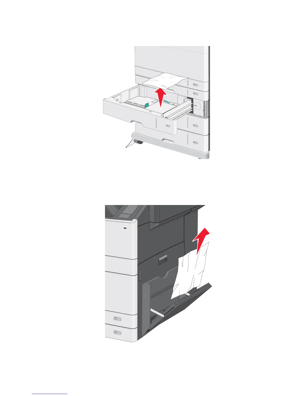 2. Open the affected tray and remove the jammed pages.