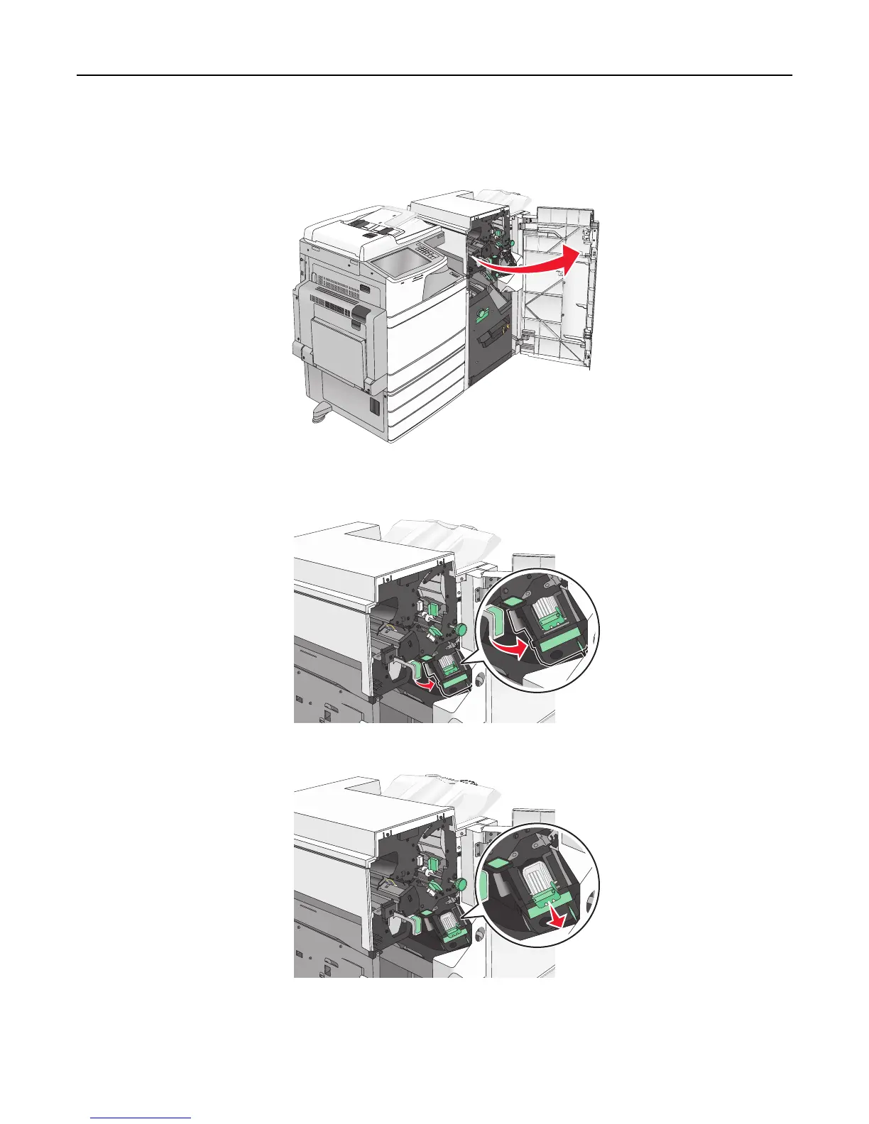 3 Lower the latch of the staple cartridge holder, and then pull the staple cartridge holder out of the printer.