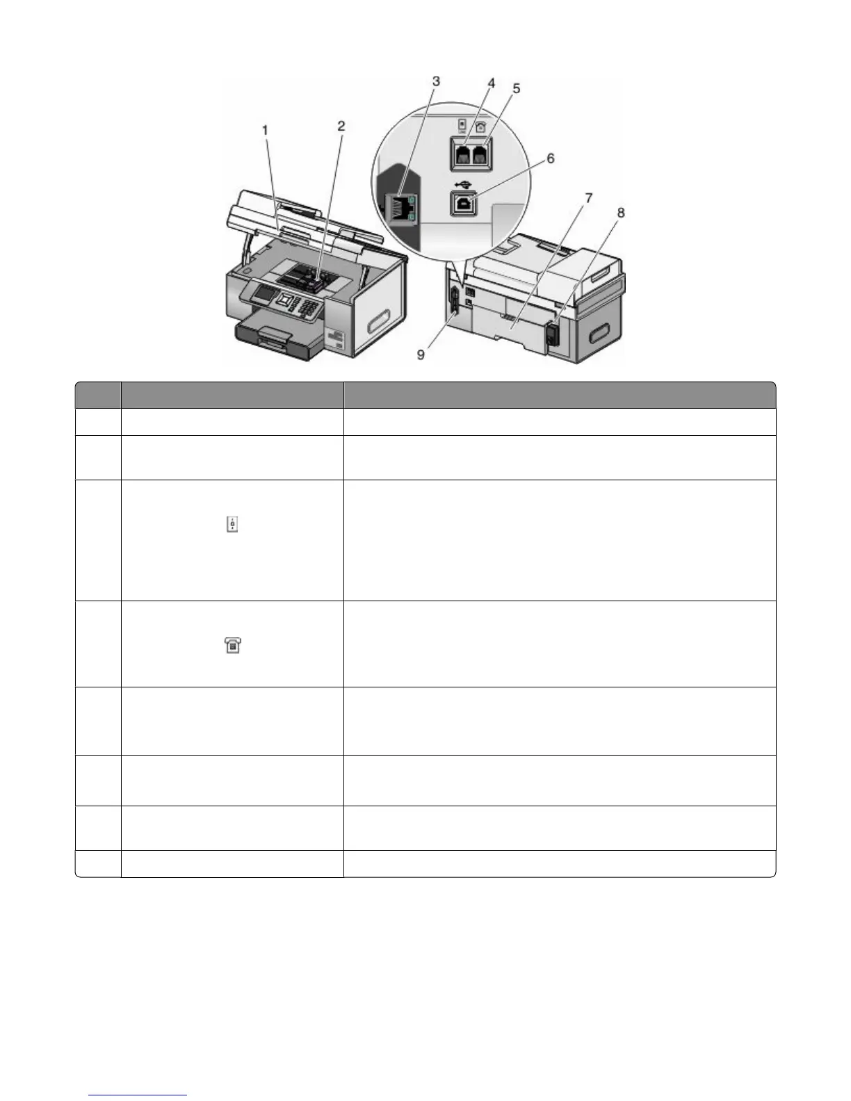 EXT port Connect additional devices, such as a data/fax modem, telephone, or