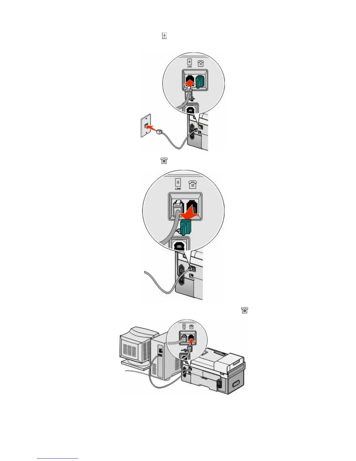 4 Connect the other telephone cord from the computer modem to the EXT port of the printer.