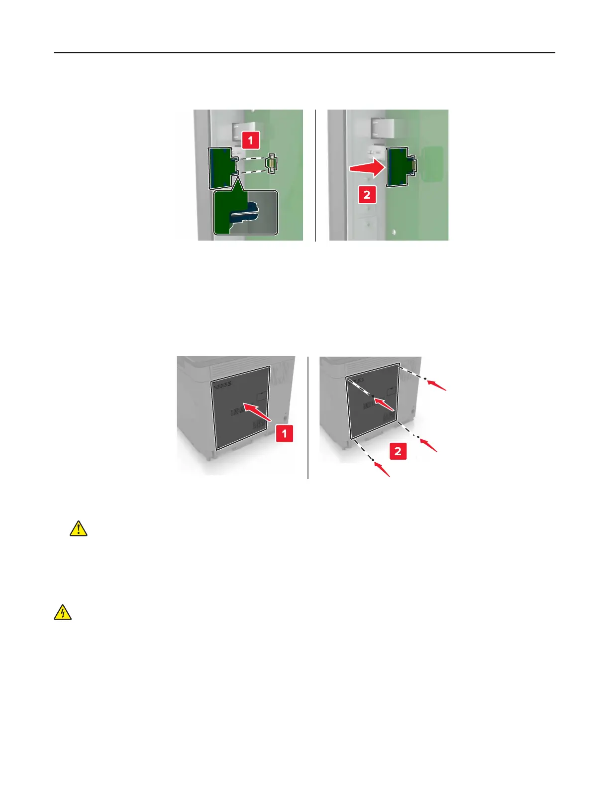 board or installing optional hardware or memory devices sometime after setting up the printer, then turn