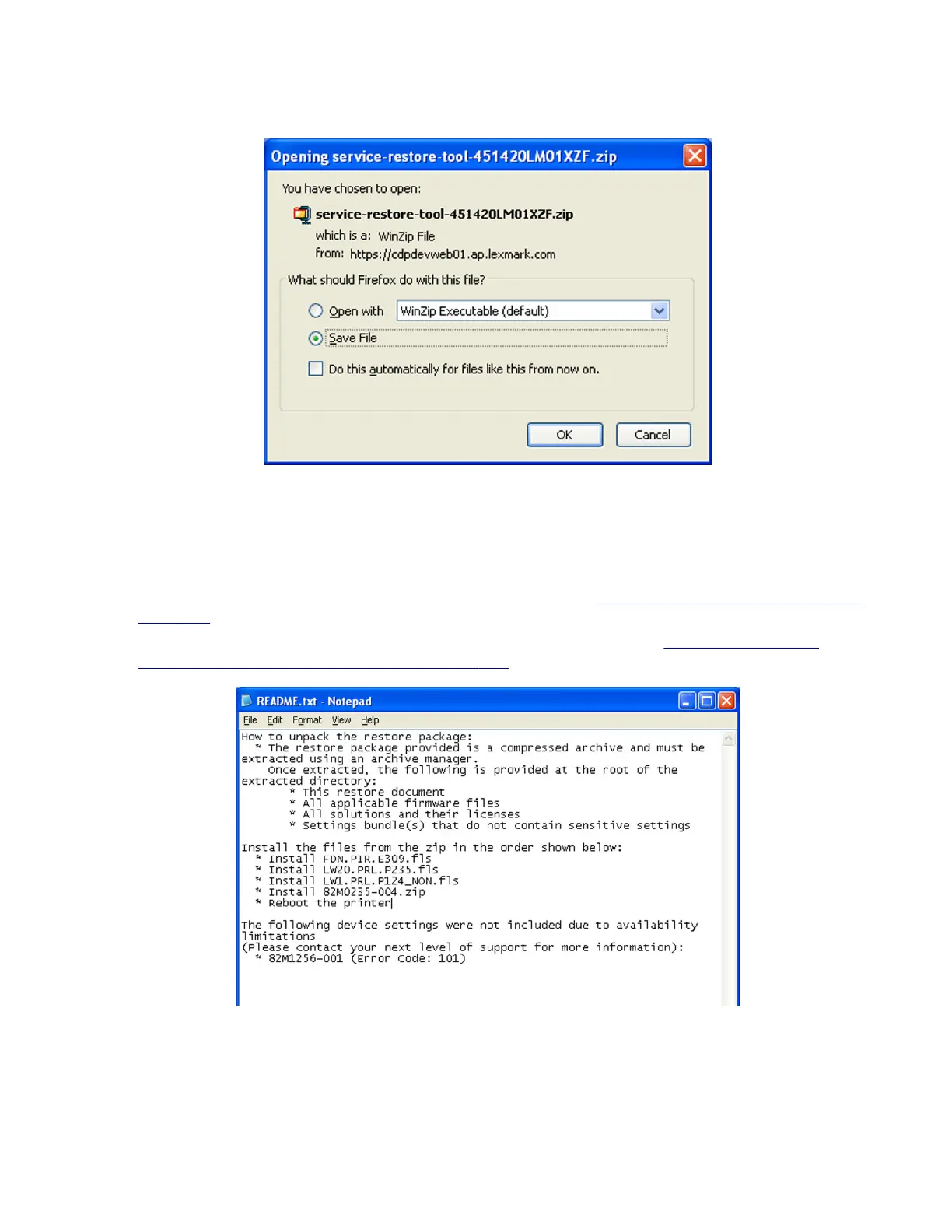 Note: Make sure that the serial number in the zip file matches the serial number of the printer being