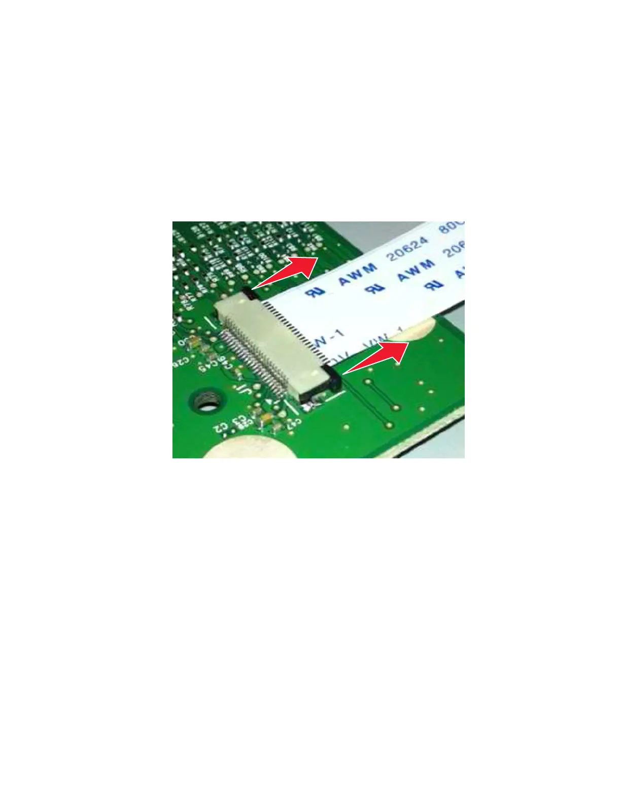 Insertion Force (ZIF) connector. The cable is inserted horizontally into the connector.