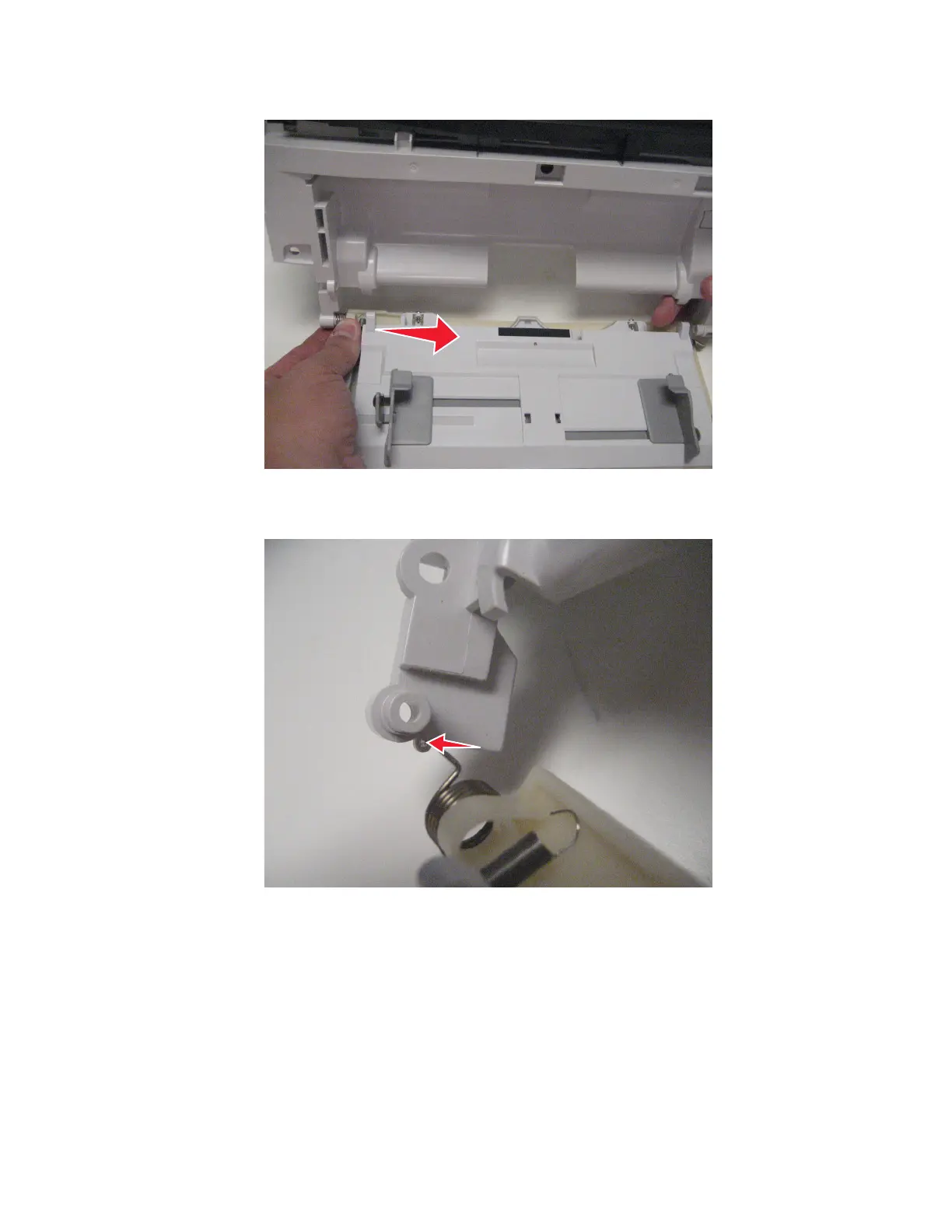 5 Slide the tray to the right, and remove the MPF tray and spring.