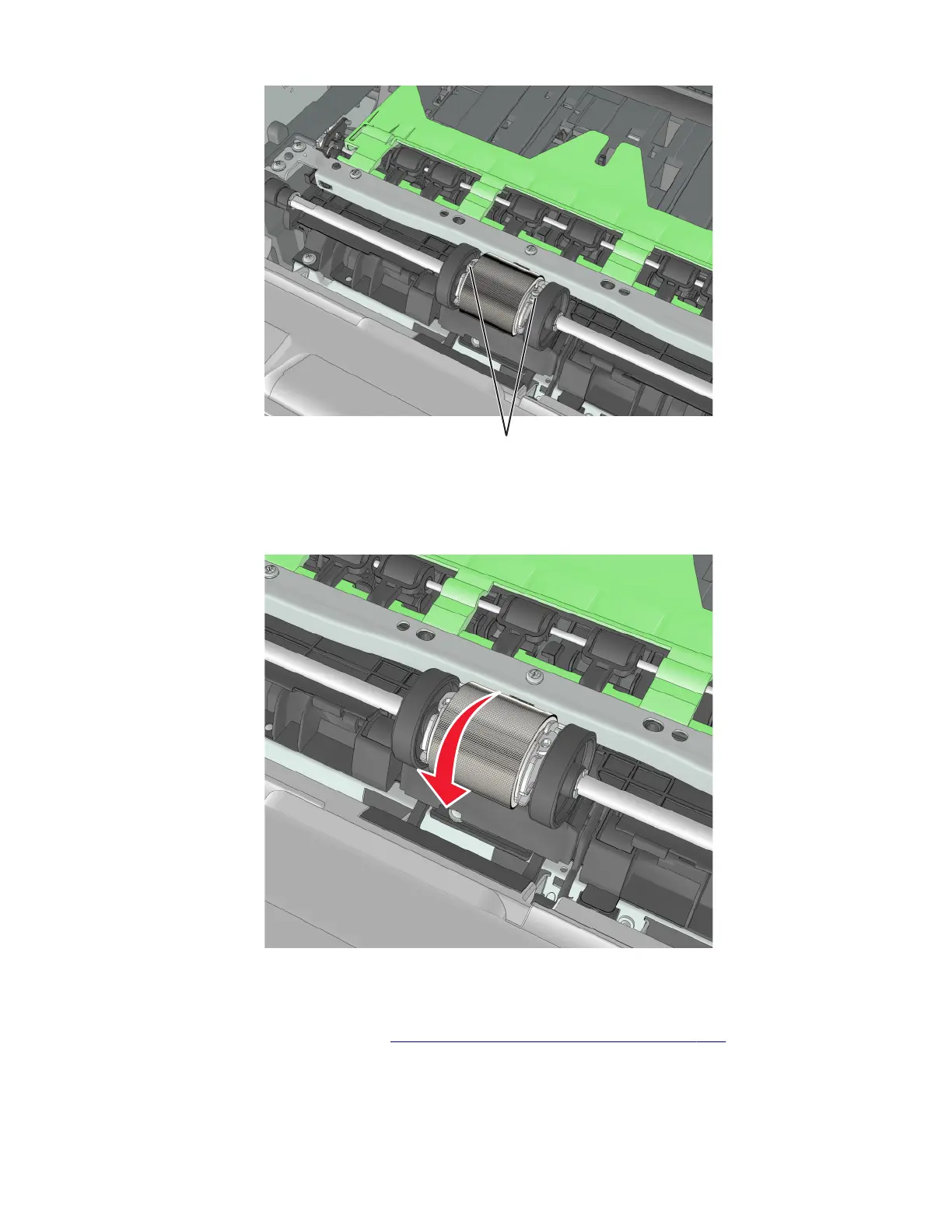 1 Remove the MPF pick roller cover. See “MPF pick roller cover removal” on page 329.