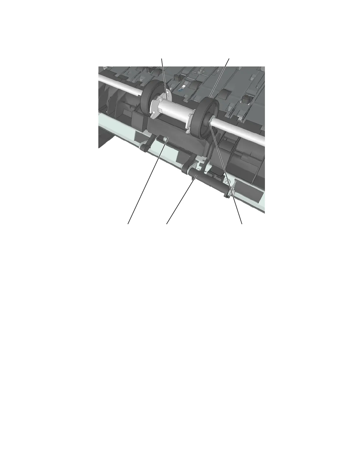 pick roller hub (E) to the right.