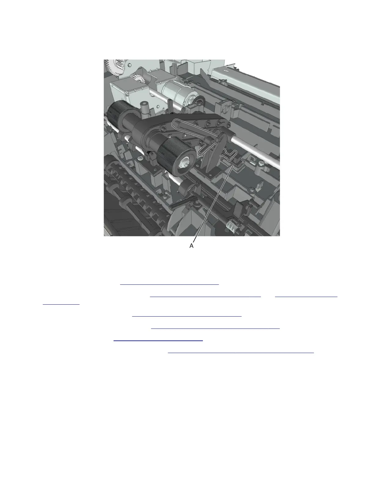 6 Remove the media present sensor flag. See “Media present sensor flag removal” on page 355.