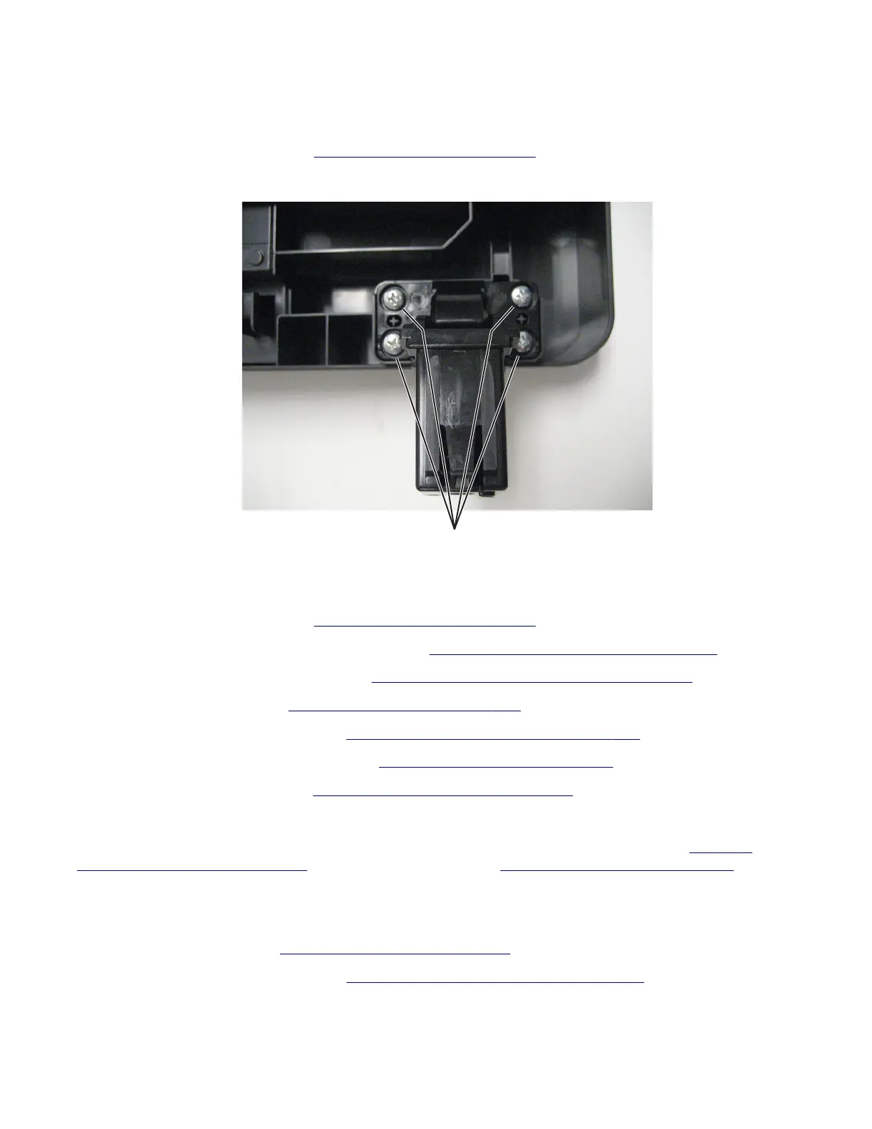 Note: The removal shown is for the left ADF hinge. The right ADF hinge is removed in a similar manner.