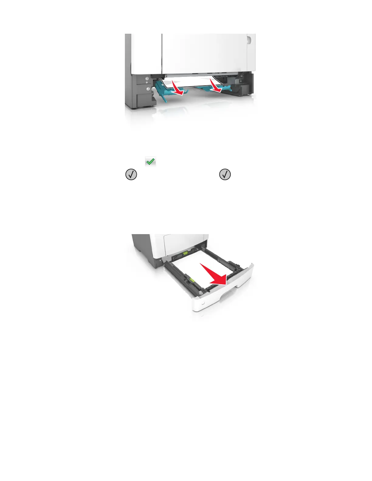 Note: The message on the printer display indicates the tray where the jammed paper is located.