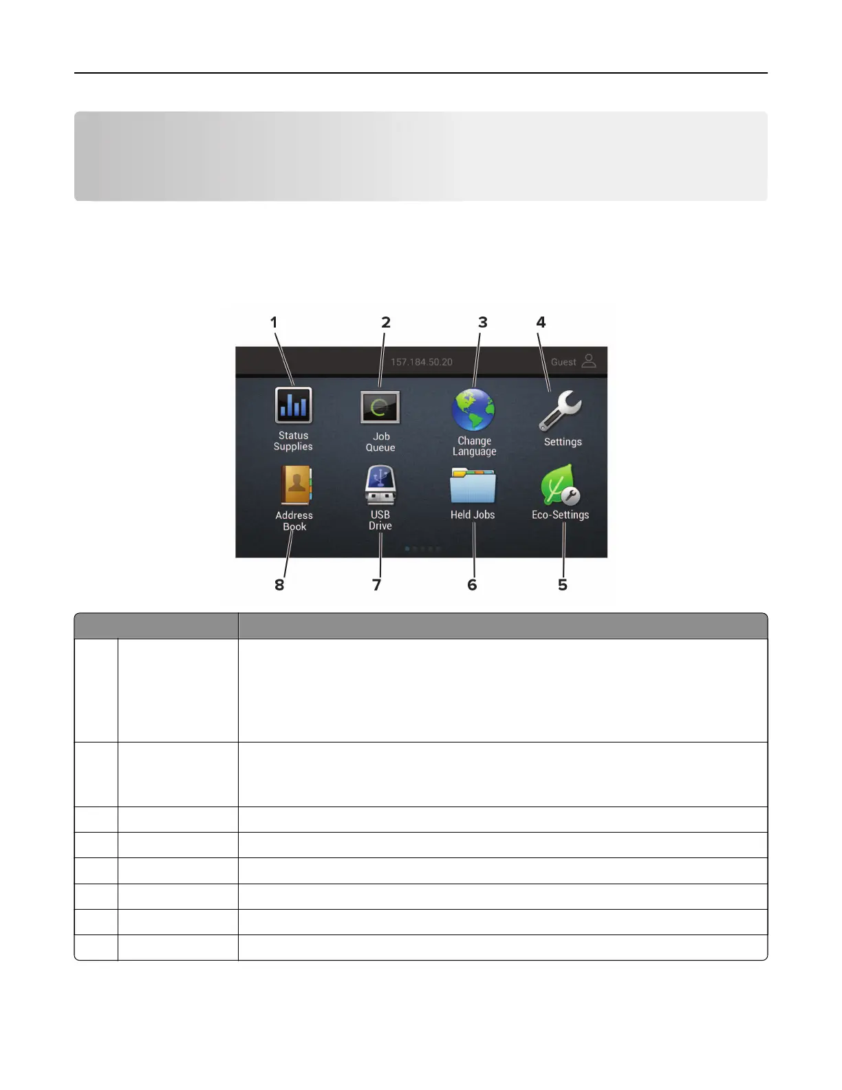 6 Held Jobs Show the print jobs that are held in the printer memory.