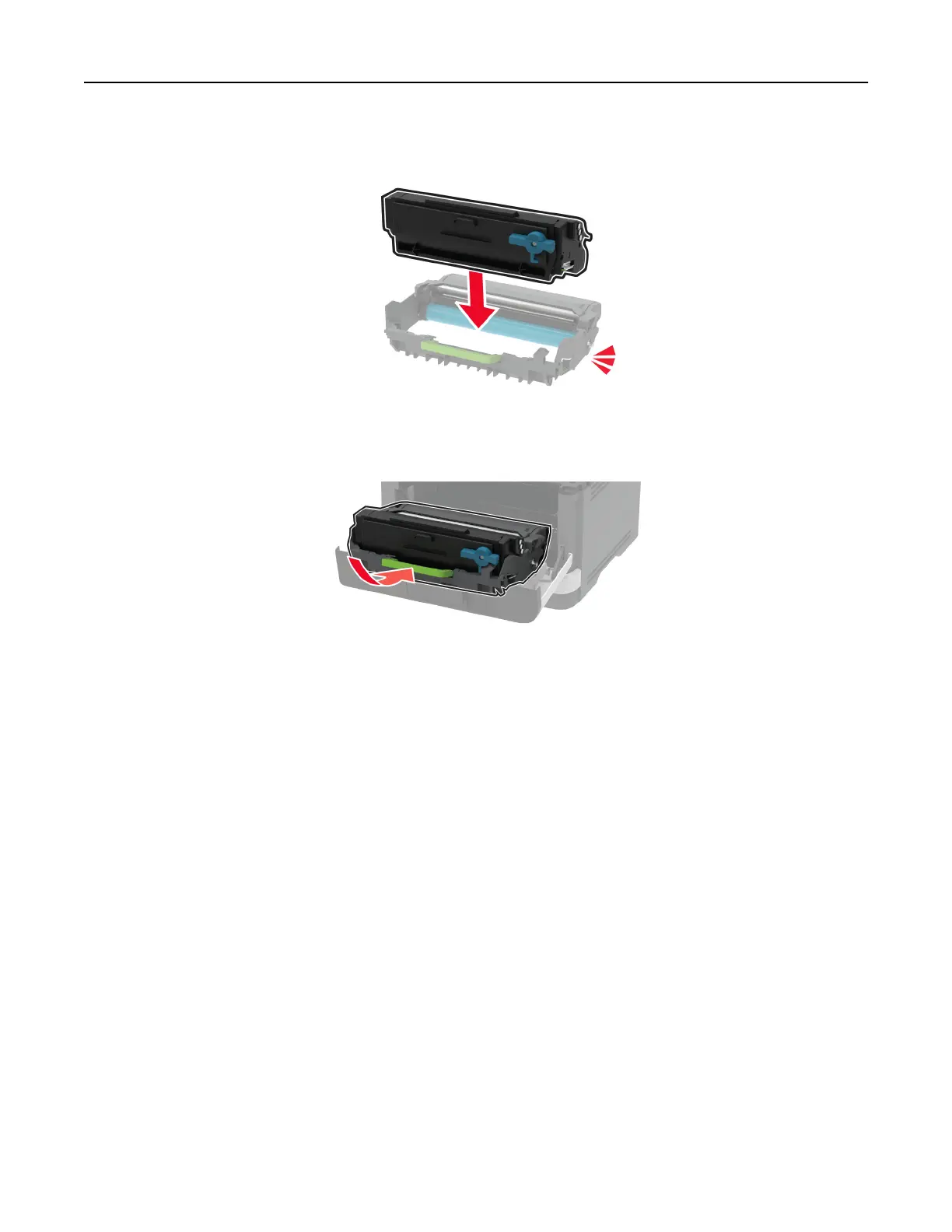 6 Insert the new toner cartridge into the imaging unit until it clicks into place.