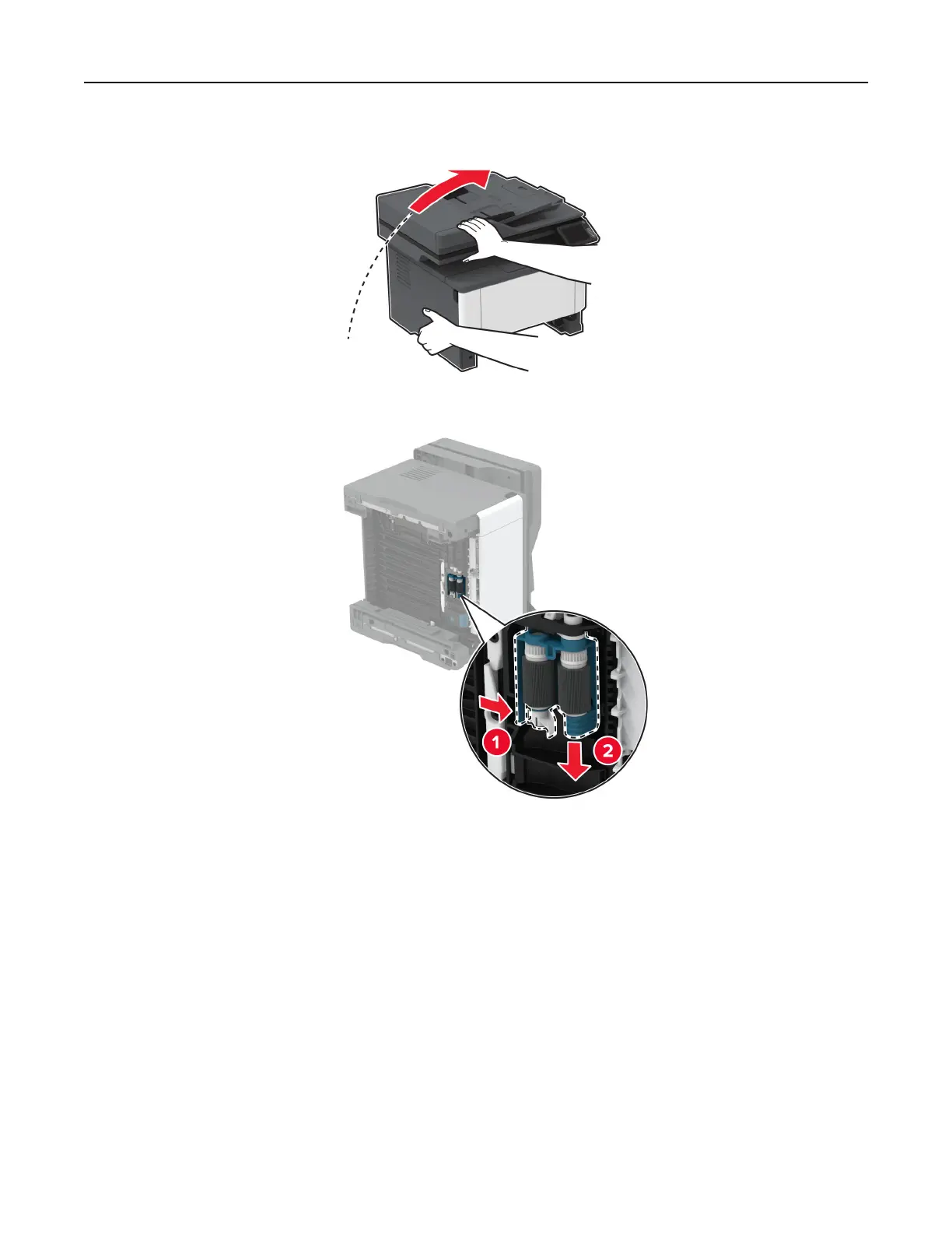 8 Remove the used pick roller assembly.