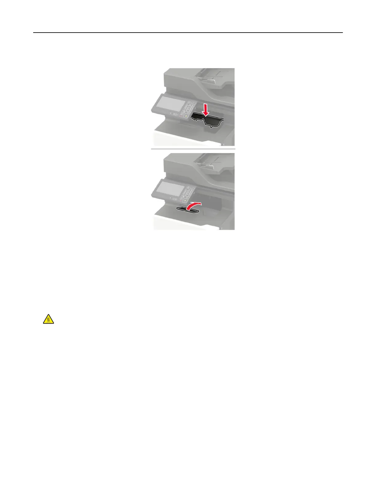 CAUTION—HOT SURFACE: The inside of the printer might be hot. To reduce the risk of injury from a