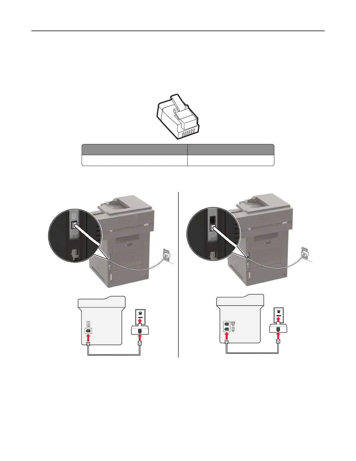 There may be an adapter plug installed in the telephone port of the printer. Do not remove the adapter plug