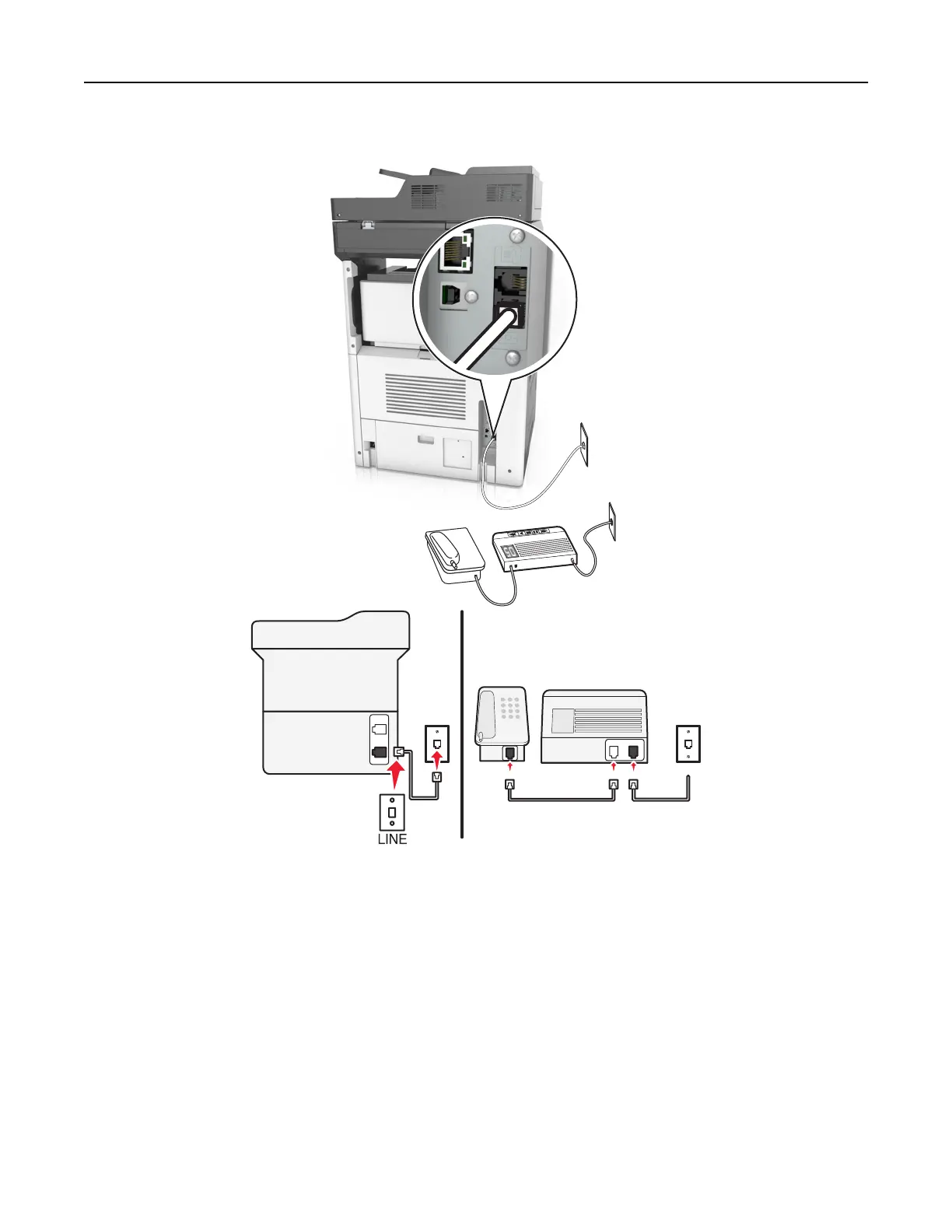 • Set the printer to pick up calls two rings after the answering machine. For example, if the answering