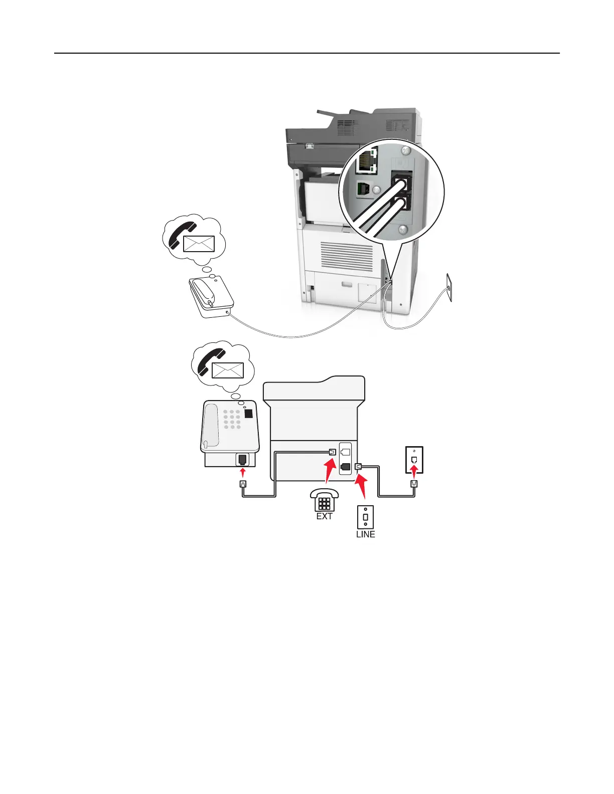 3 Connect the telephone to the telephone port of the printer.
