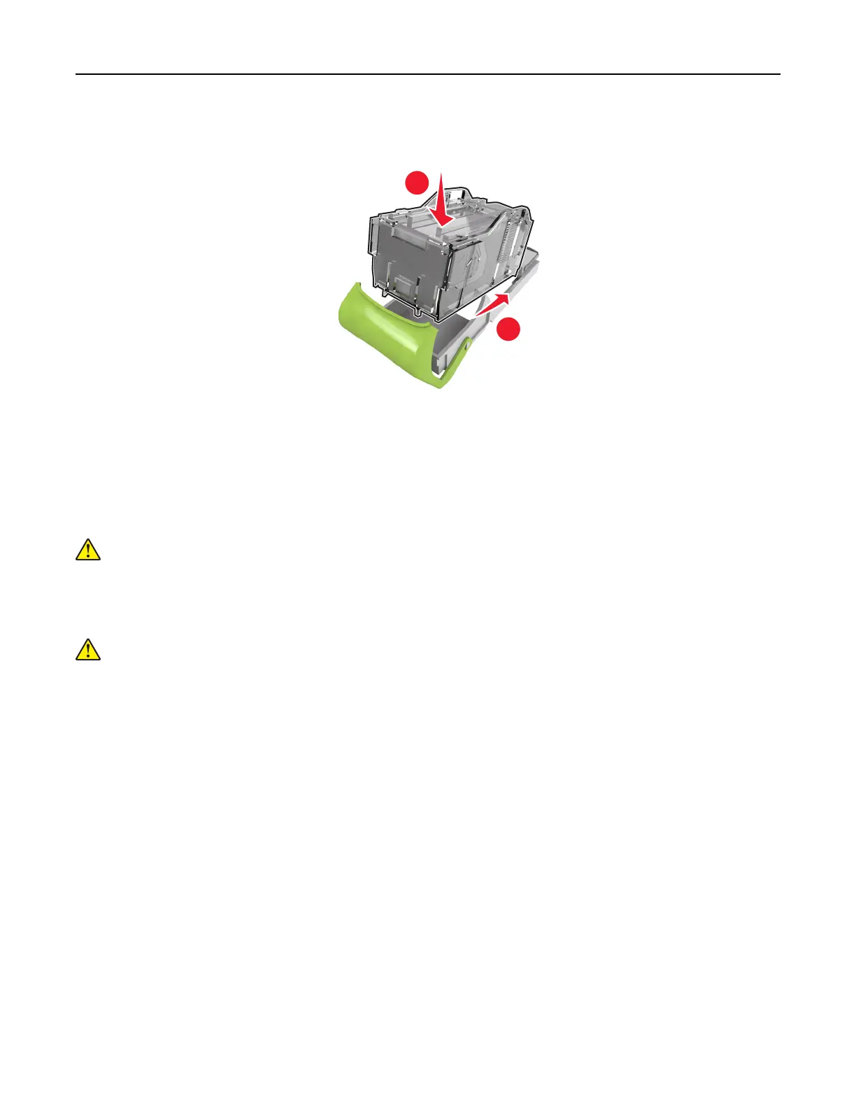 4 Insert the front side of the new staple case into the staple cartridge, and then push the rear side into the
