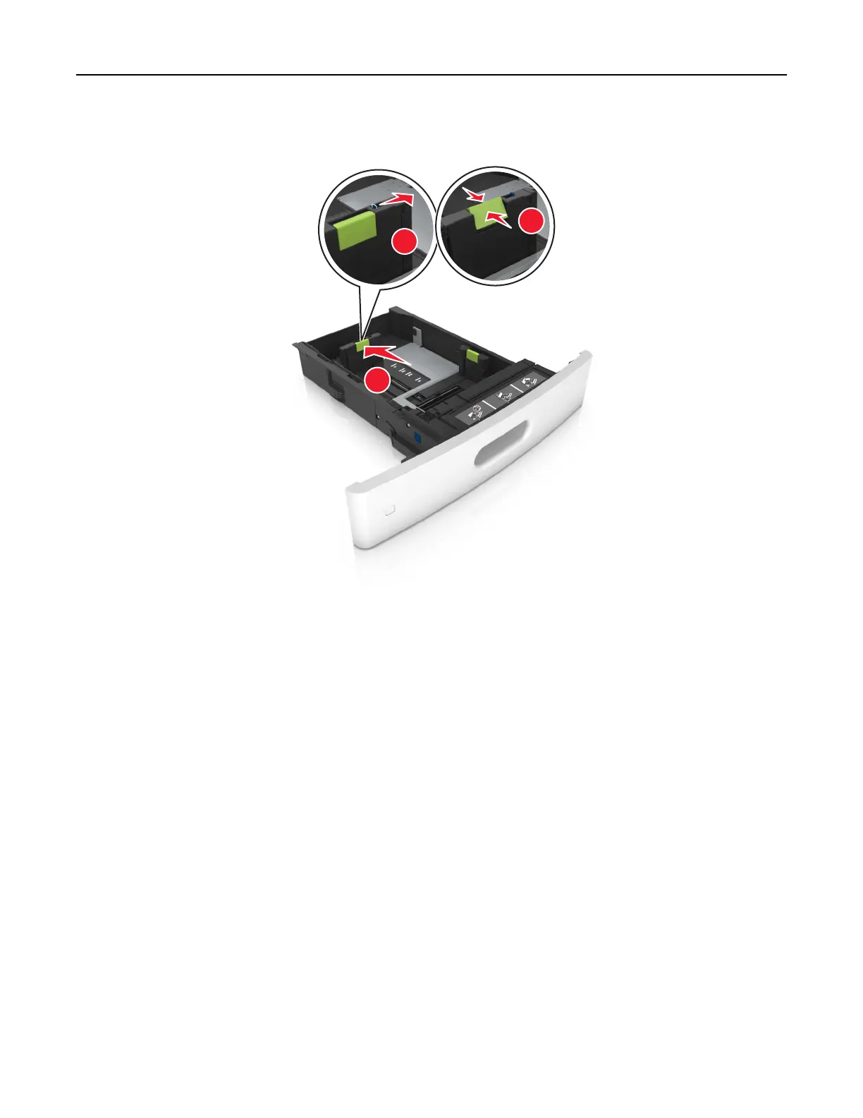 Use the paper size indicators on the bottom of the tray to help position the guides.