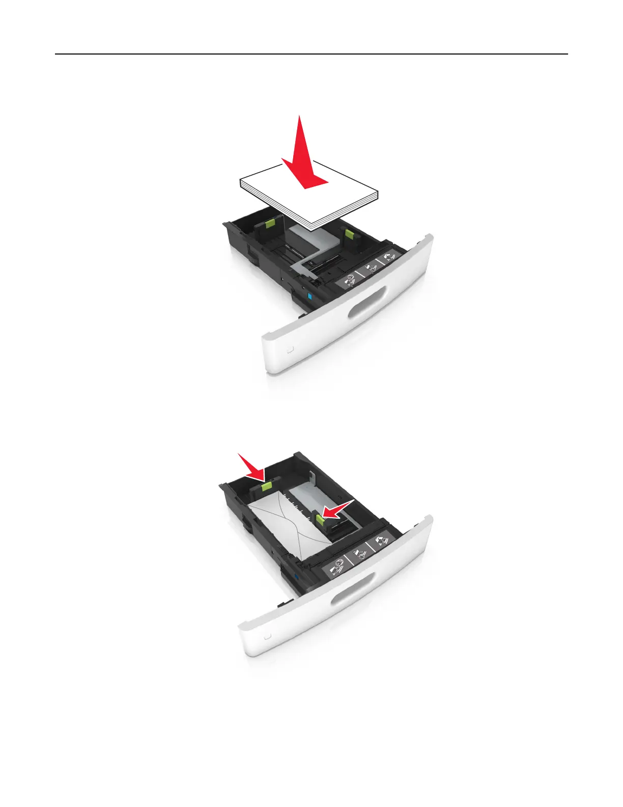 Do not slide the paper into the tray. Load paper as shown in the illustration.