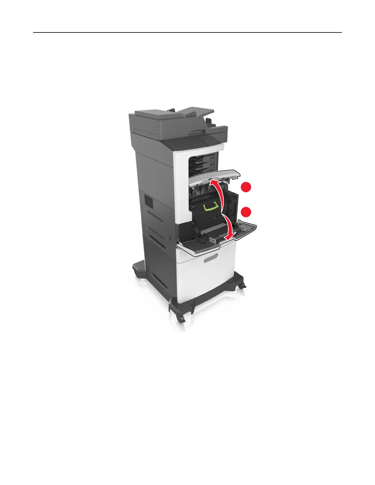 1 Lift the front cover, and then pull down the multipurpose feeder door.