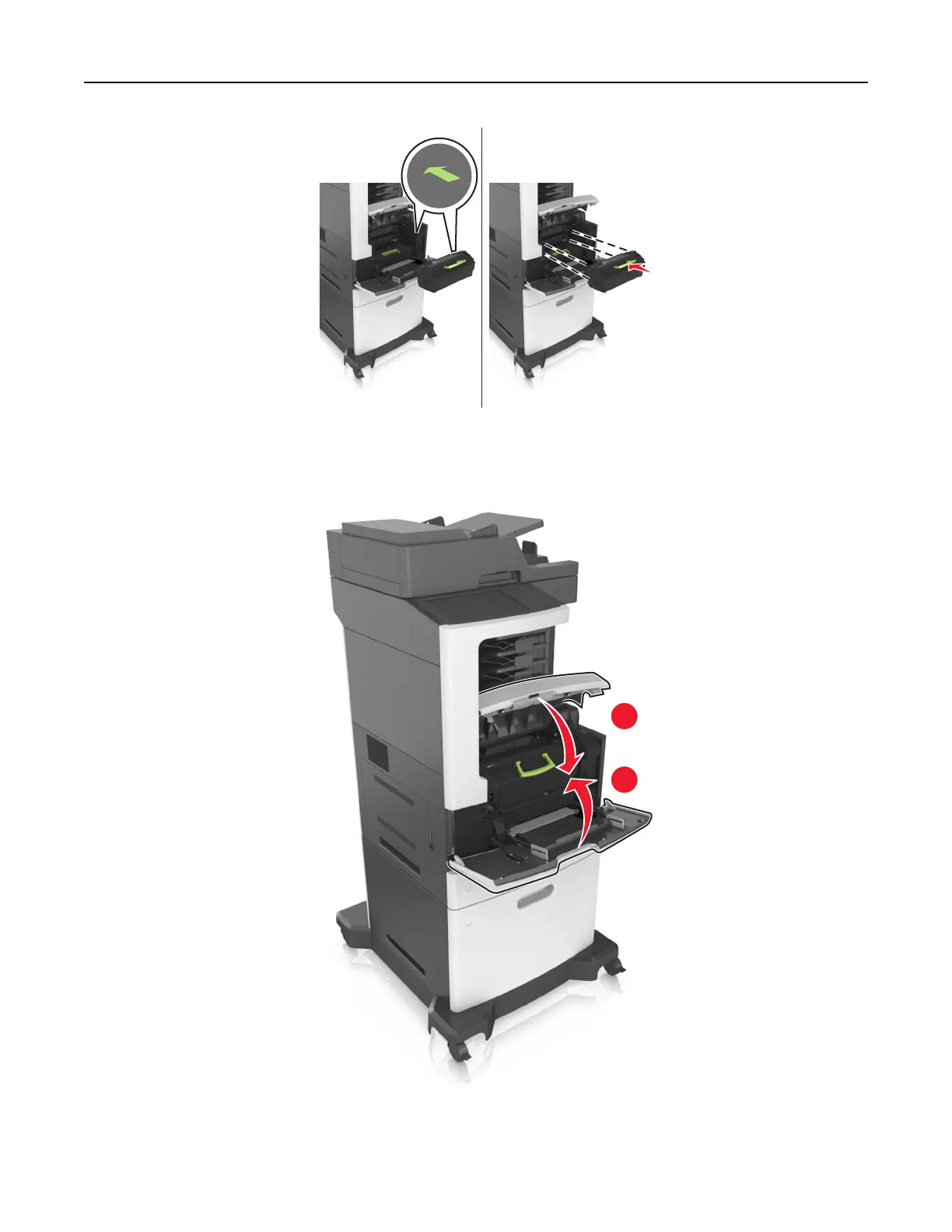 Warning—Potential Damage: When replacing a toner cartridge, do not leave the imaging unit exposed to
