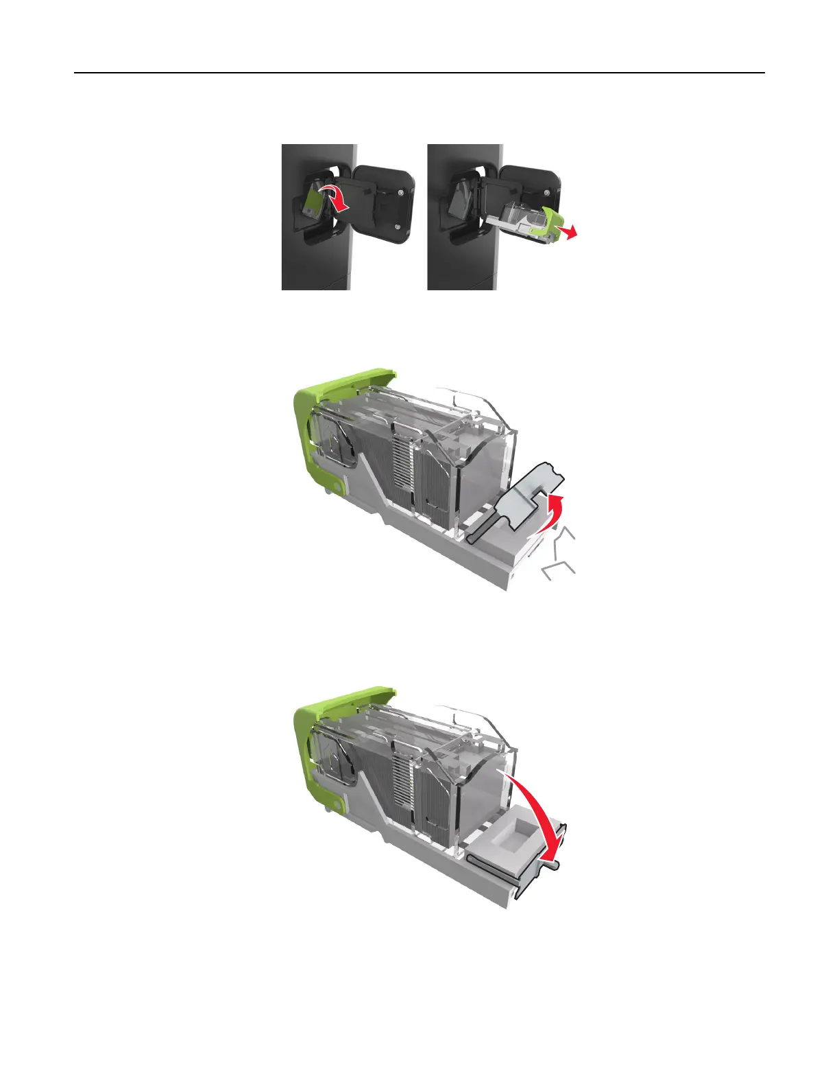 3 Open the staple guard, and then remove the loose staples.
