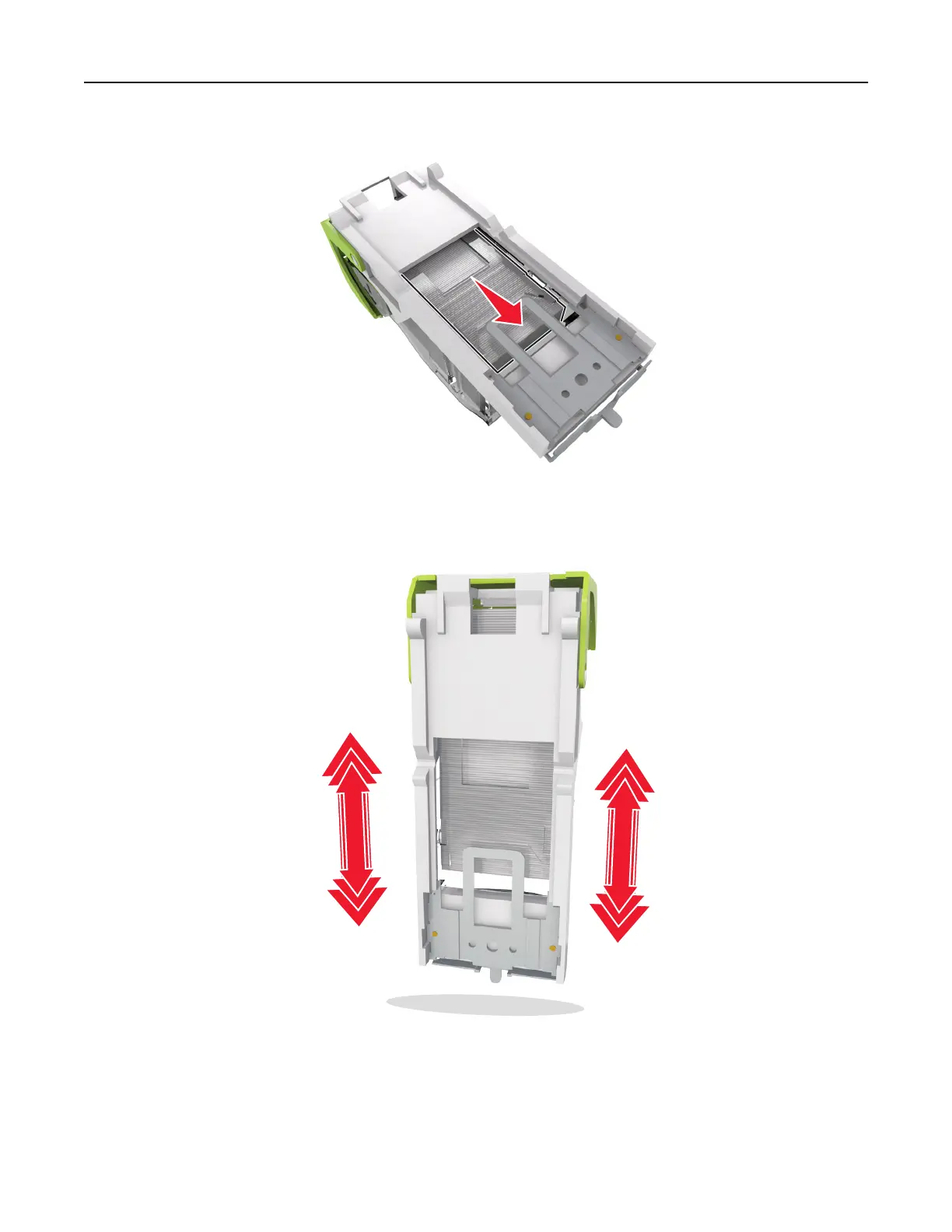 Note: If the staples are at the rear of the cartridge, then shake the cartridge downward to bring the