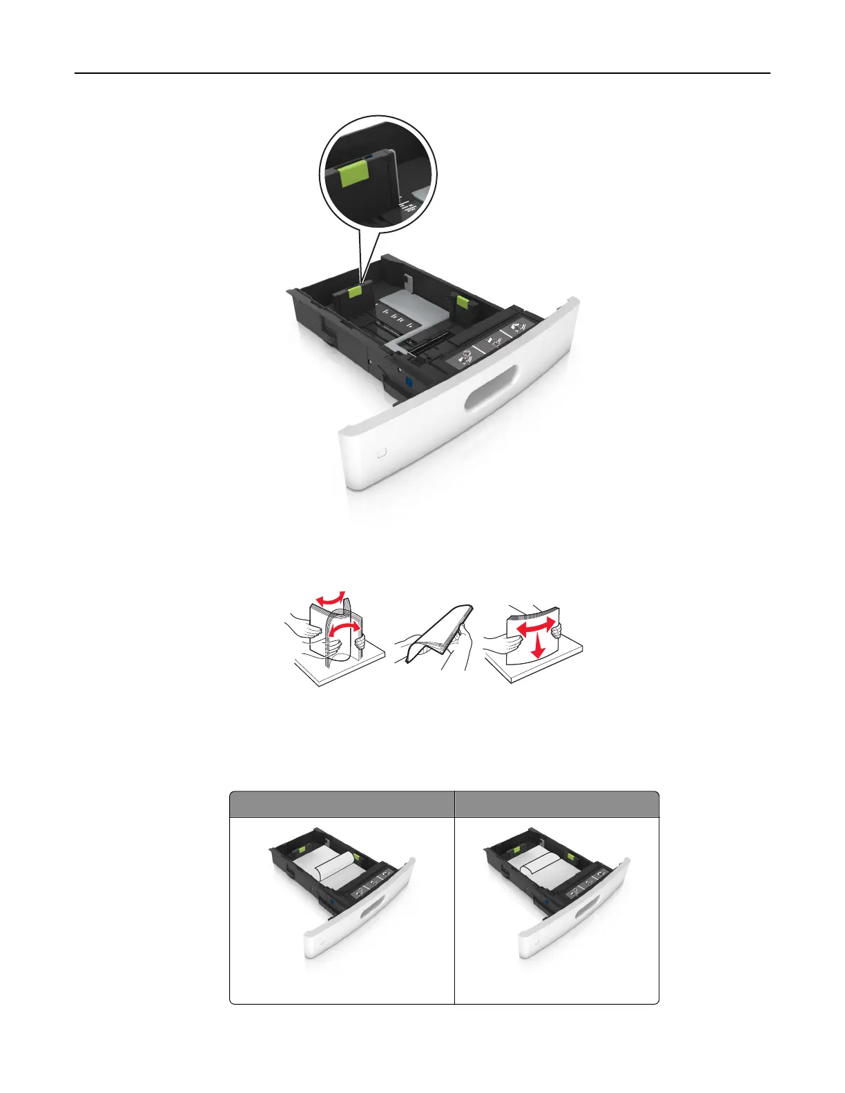 4 Flex the sheets back and forth to loosen them, and then fan them. Do not fold or crease the paper. Straighten