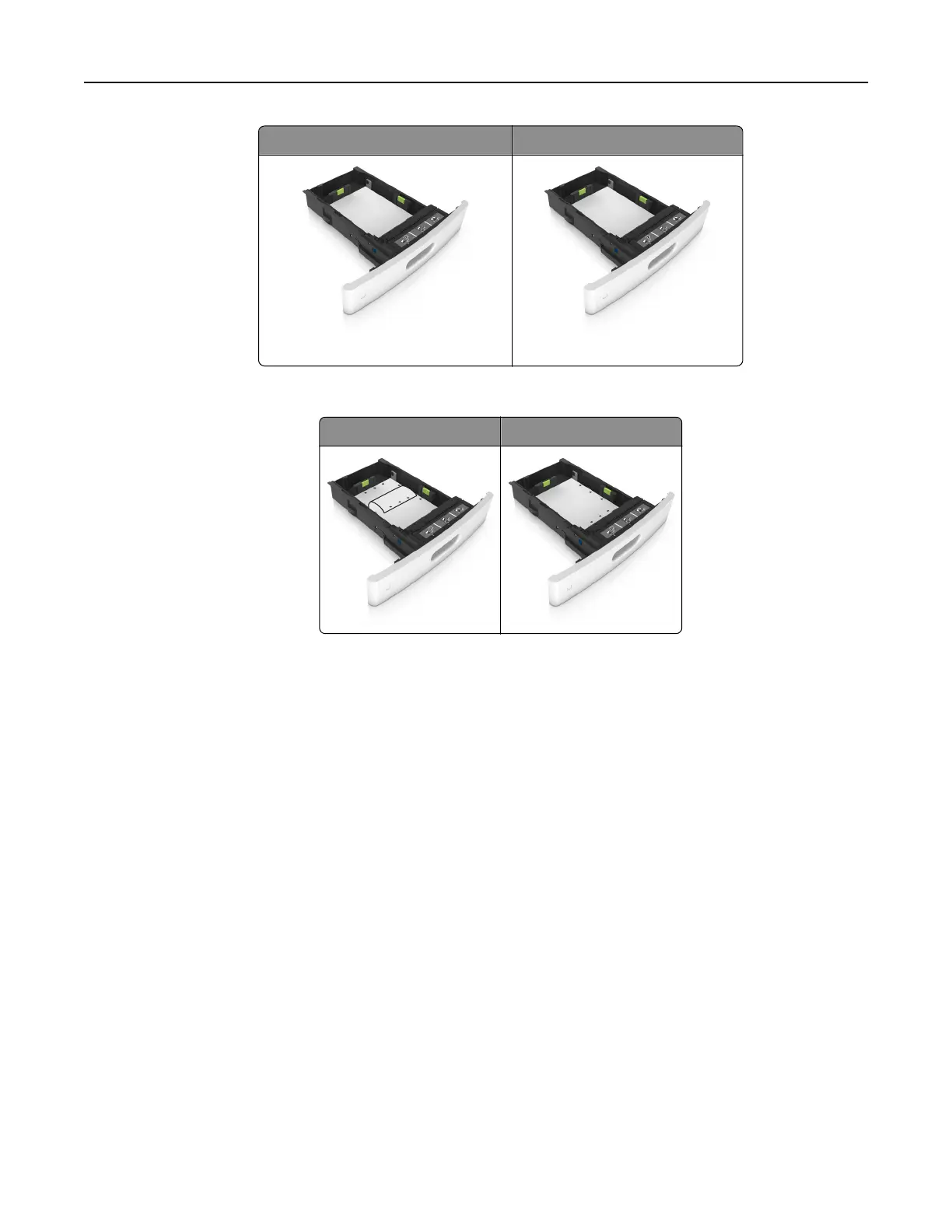 Note: If the holes on the long edge of the paper are on the left side of the tray, then a jam may occur.