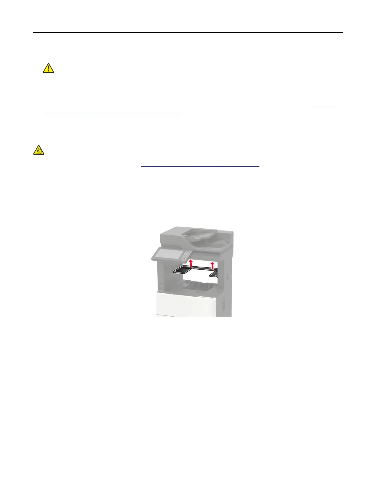 CAUTION—TIPPING HAZARD: Installing one or more options on your printer or MFP may require a