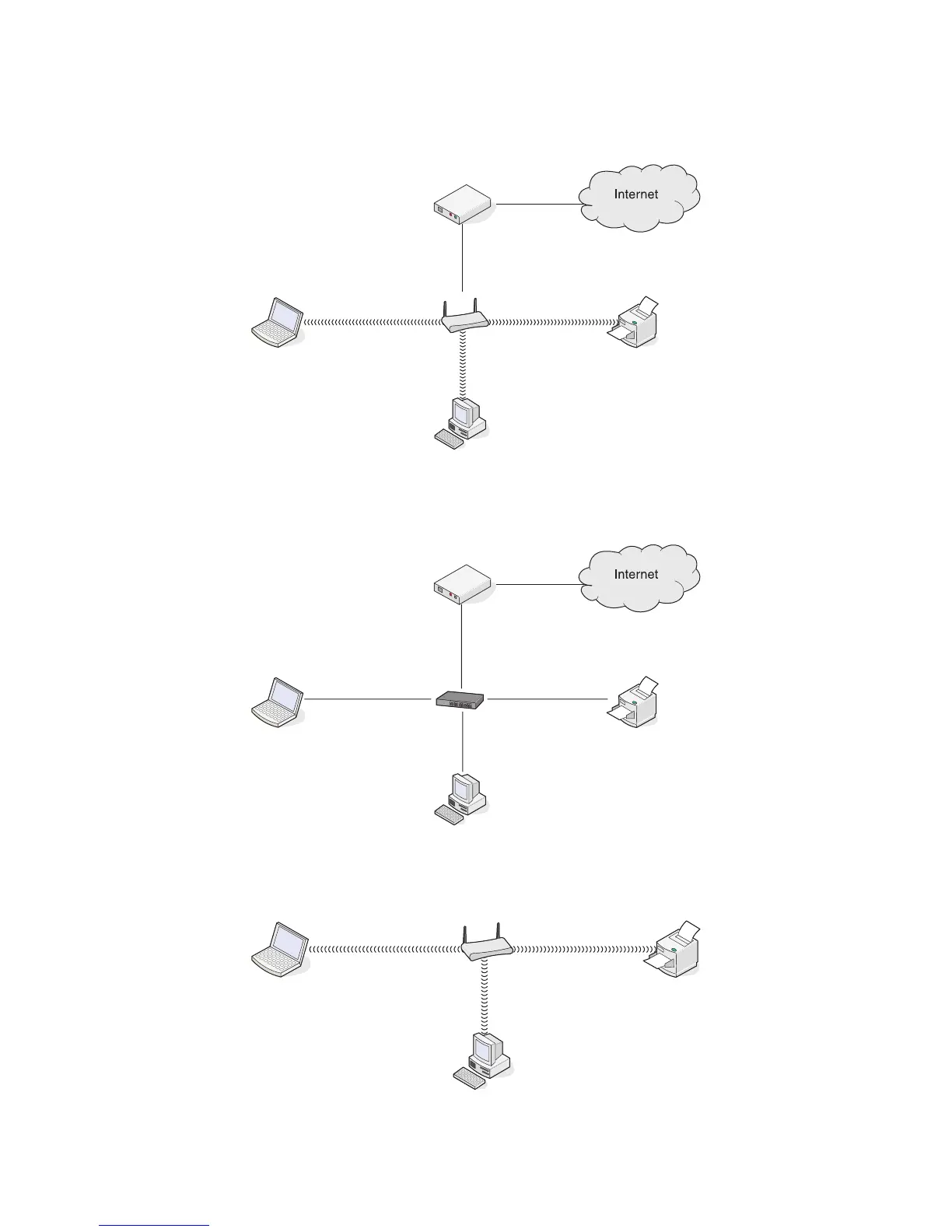 Scenario 4: Computer, laptop, and printer connected wirelessly without Internet