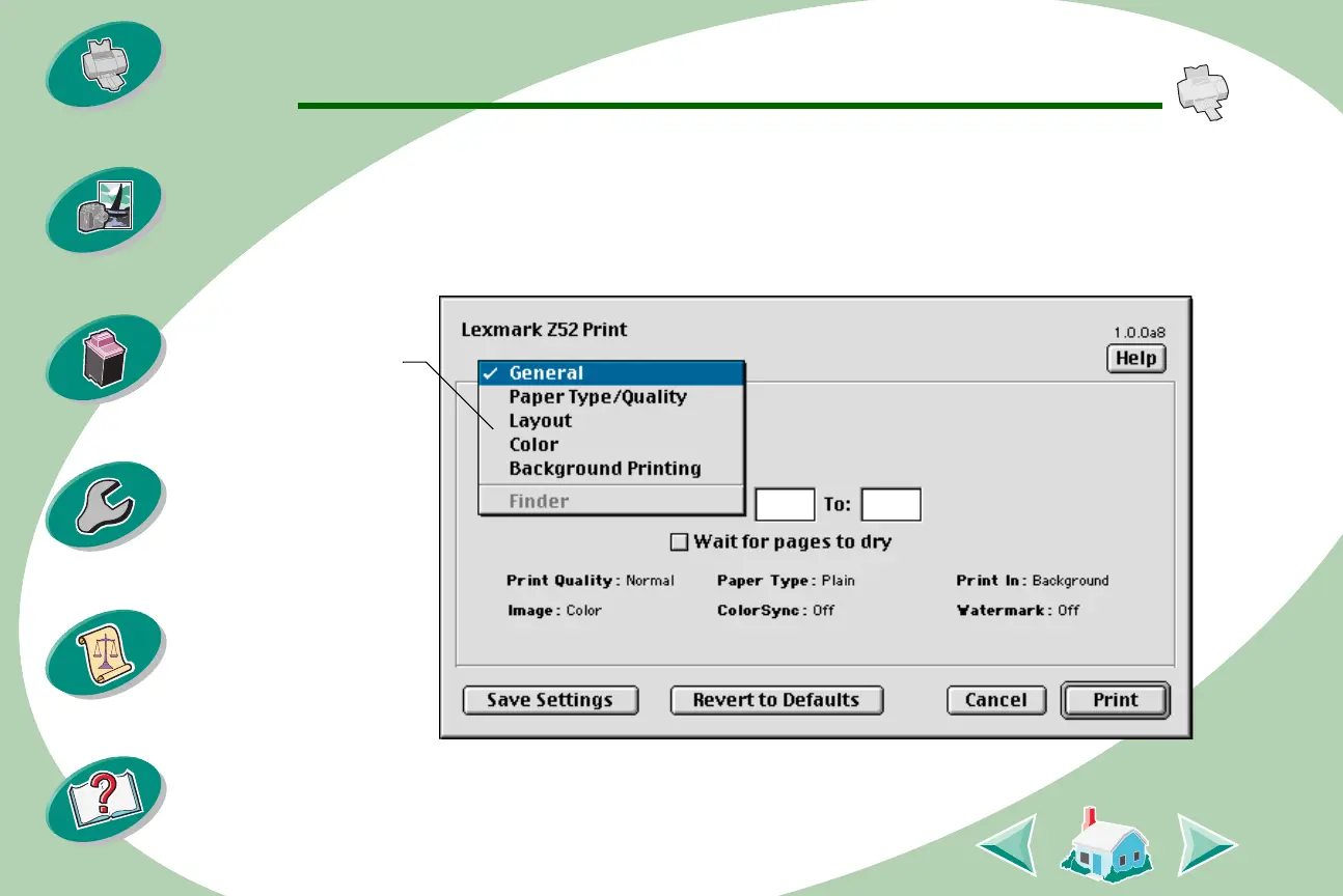 options such as number of copies, pages to print, paper source,
