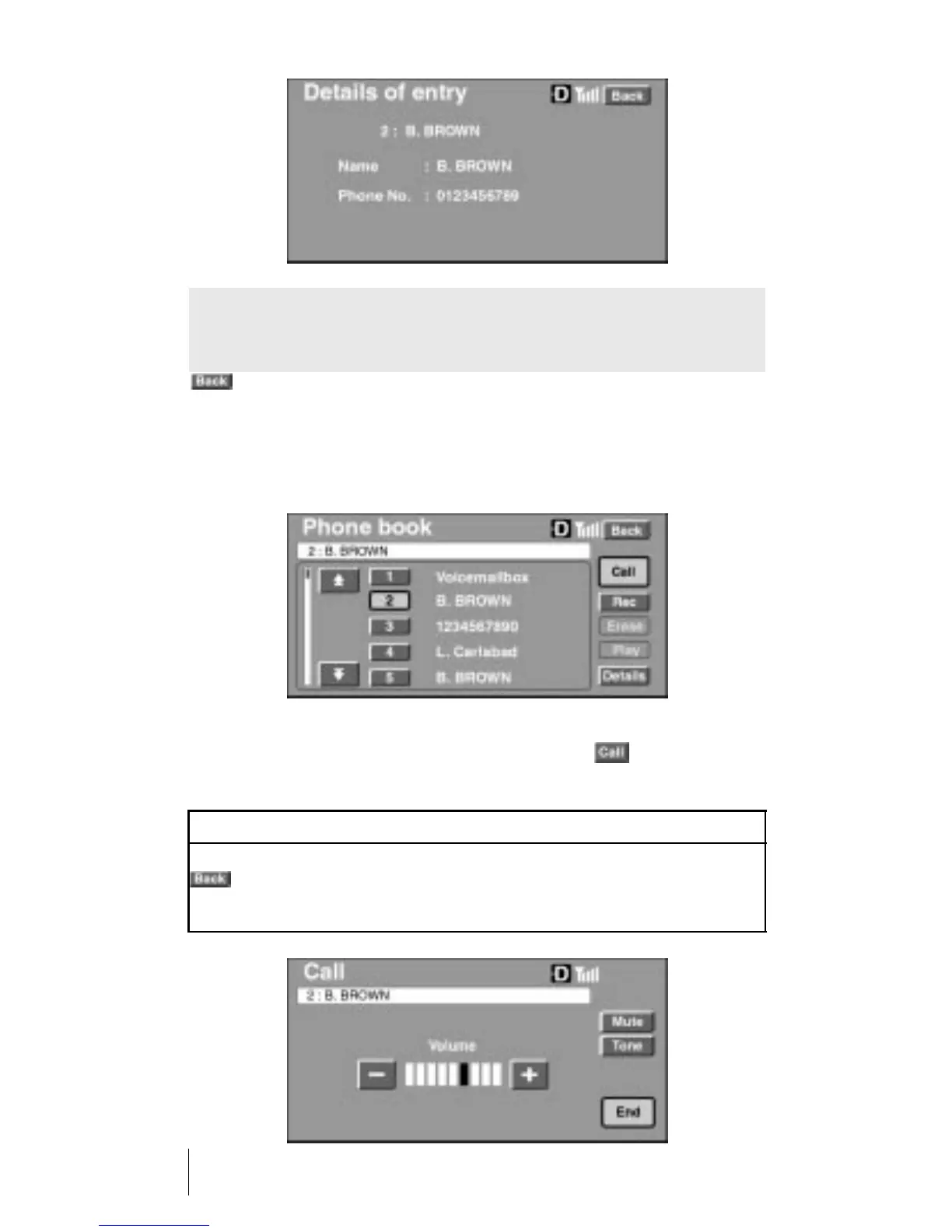 The Details of Entry screen displays a name or phone number in