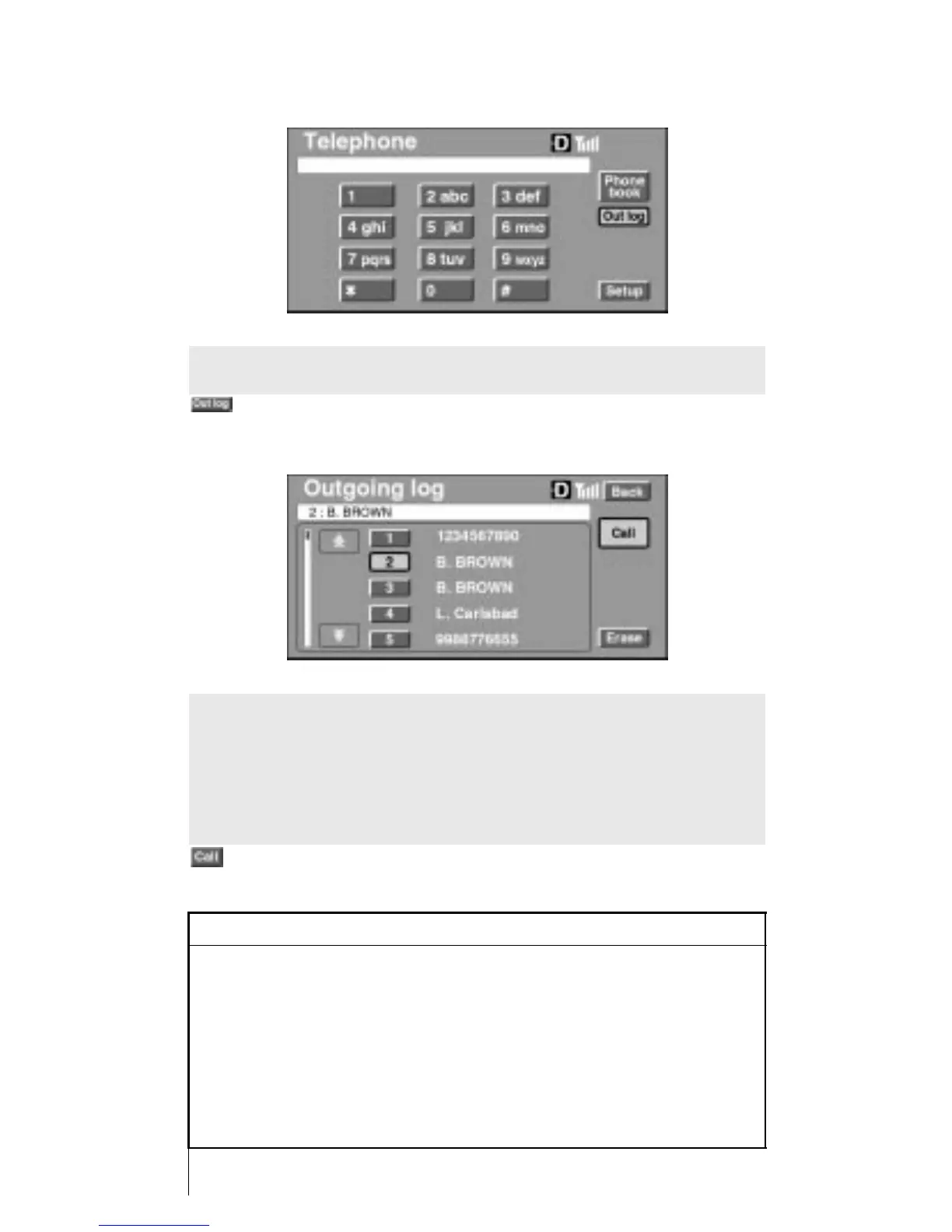 To place a call using the outgoing log, first go to the Outgoing