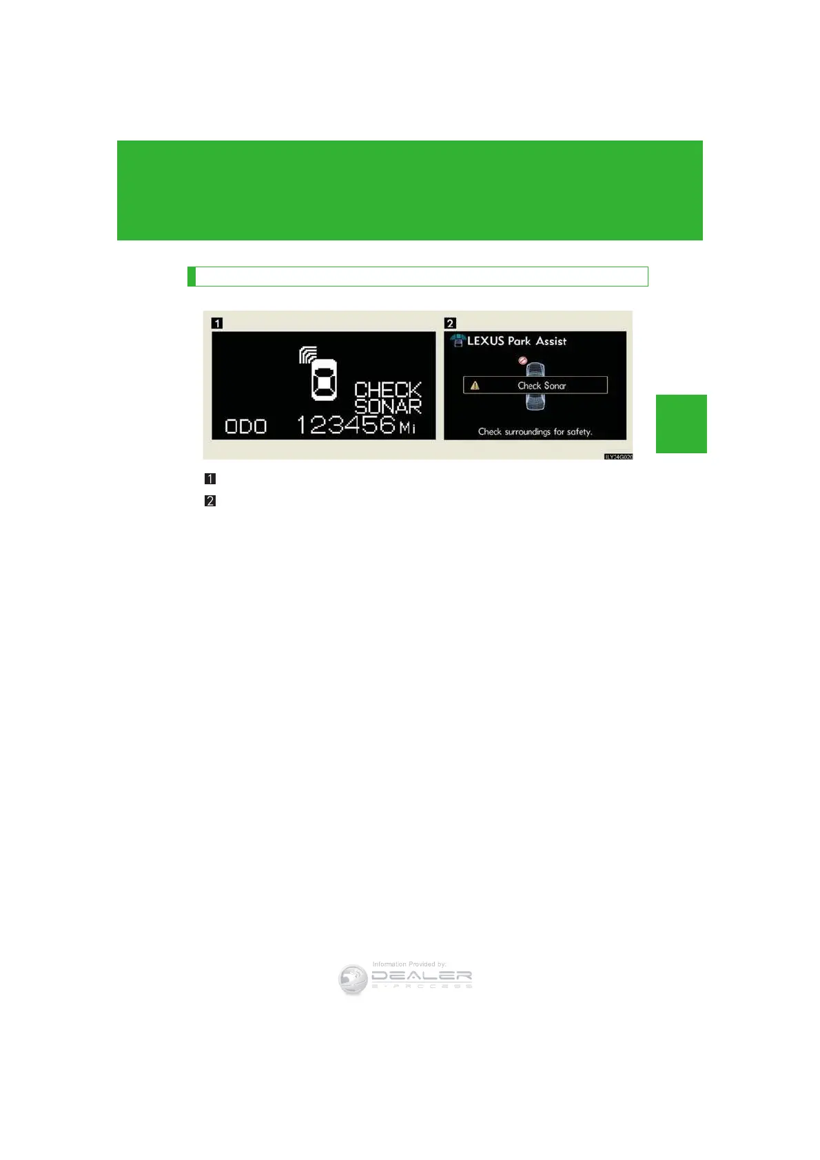 tration shows a malfunctioning left front sensor.) Have the vehicle