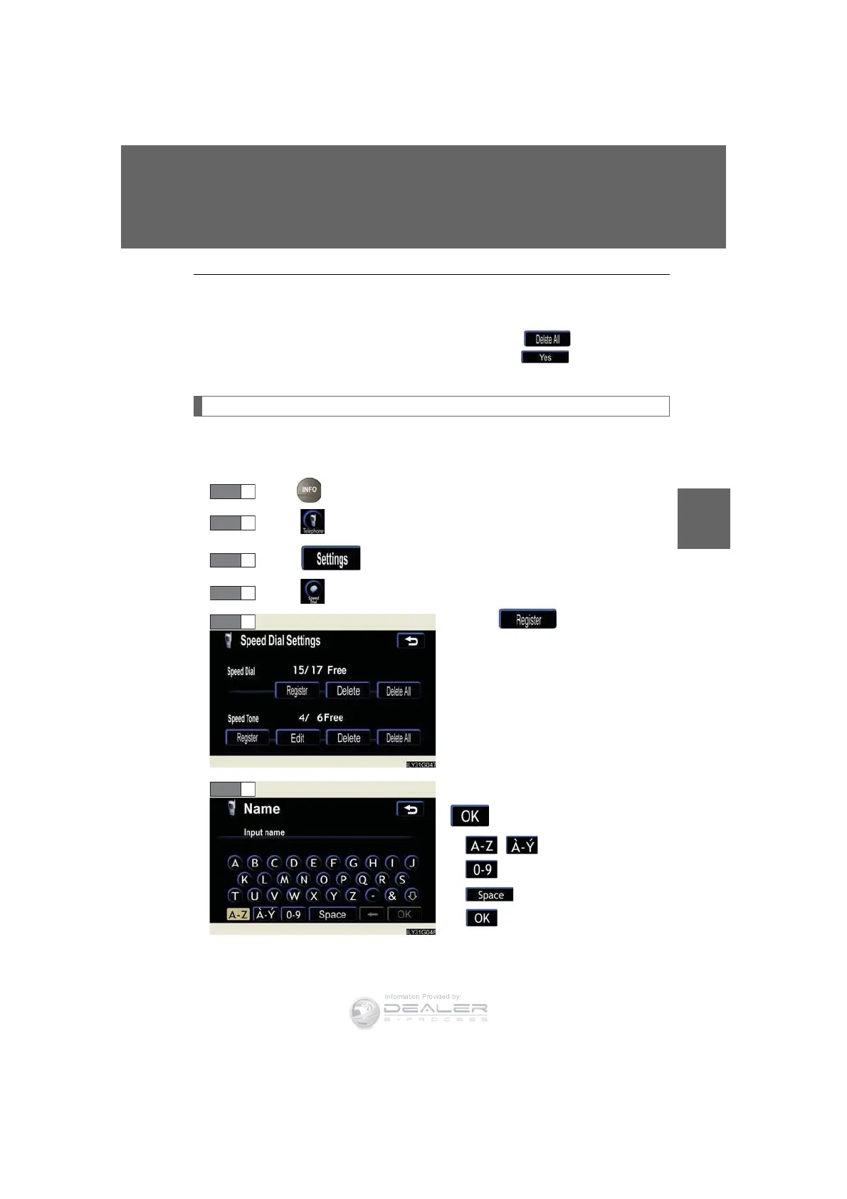 Follow the steps for “Deleting a speed dial item” to “STEP 5”. In the “Speed Dial”