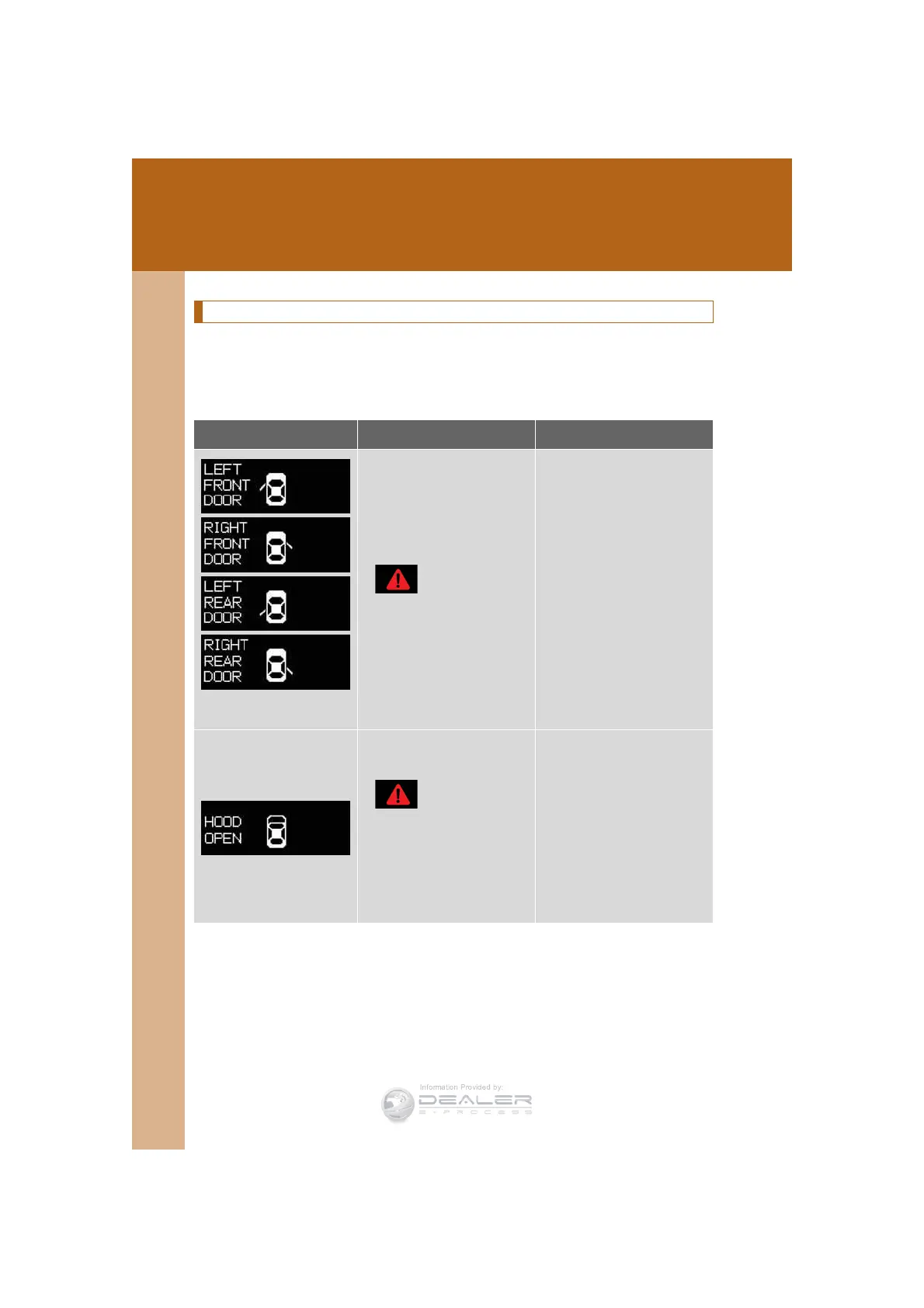 A buzzer sounds and a warning message is shown on the multi-informa-
