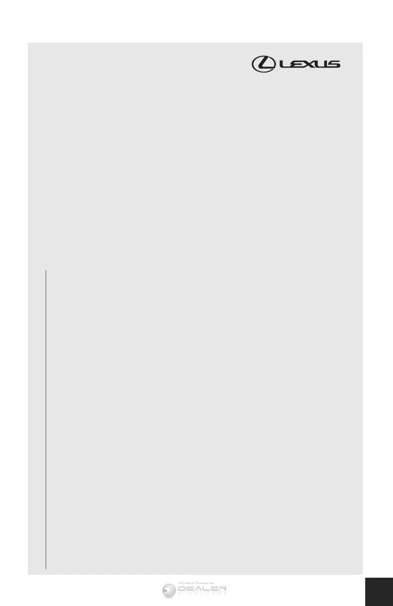 Your Lexus dealer will provide quality maintenance and any other assistance