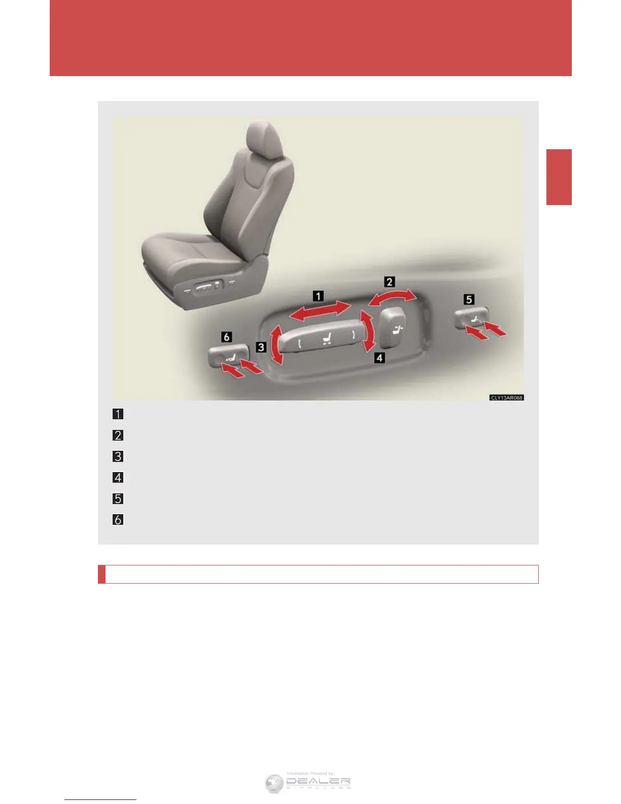 1-3. Adjustable components (seats, mirrors, steering wheel)