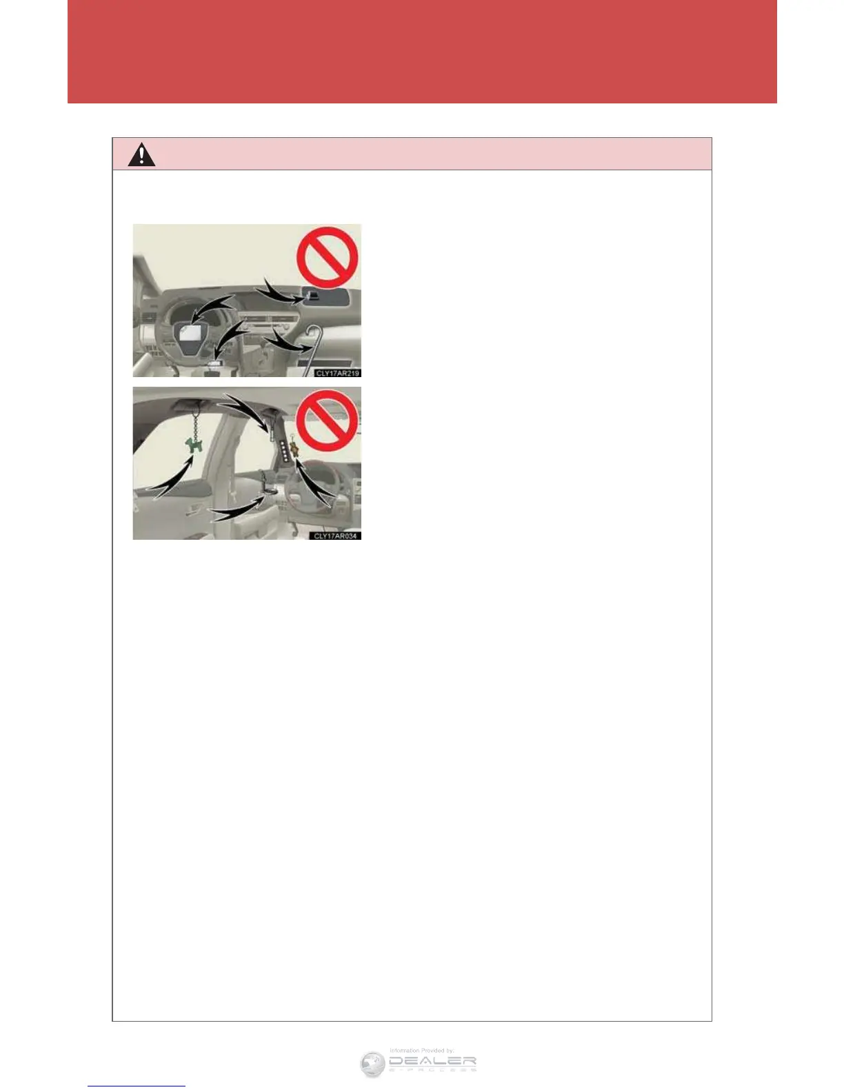l Do not strike or apply significant levels of force to the area of the SRS airbag