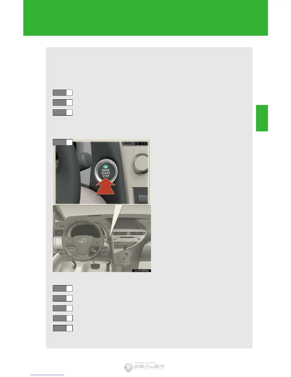 The “ENGINE START STOP” switch indicator will turn green. If the