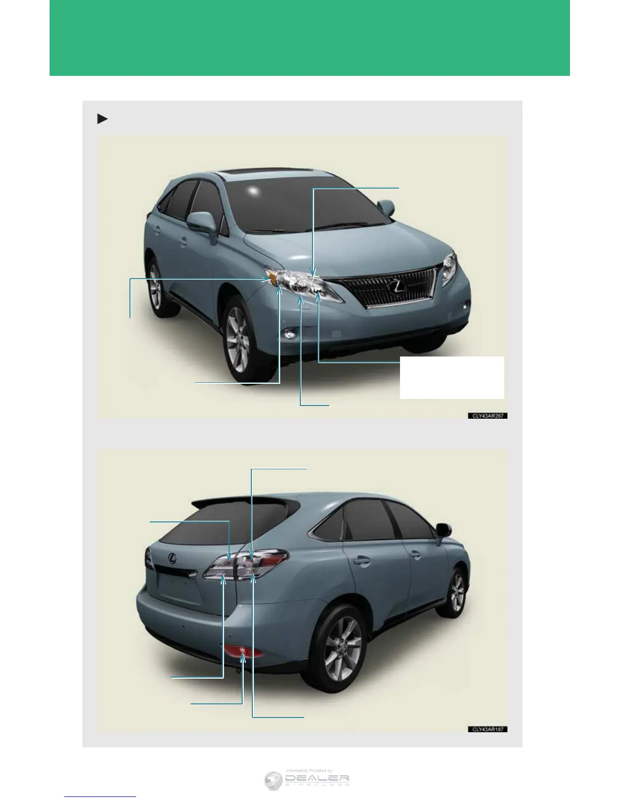 Lexus 2011 RX350 - Halogen Headlights; Rear Bulb Locations