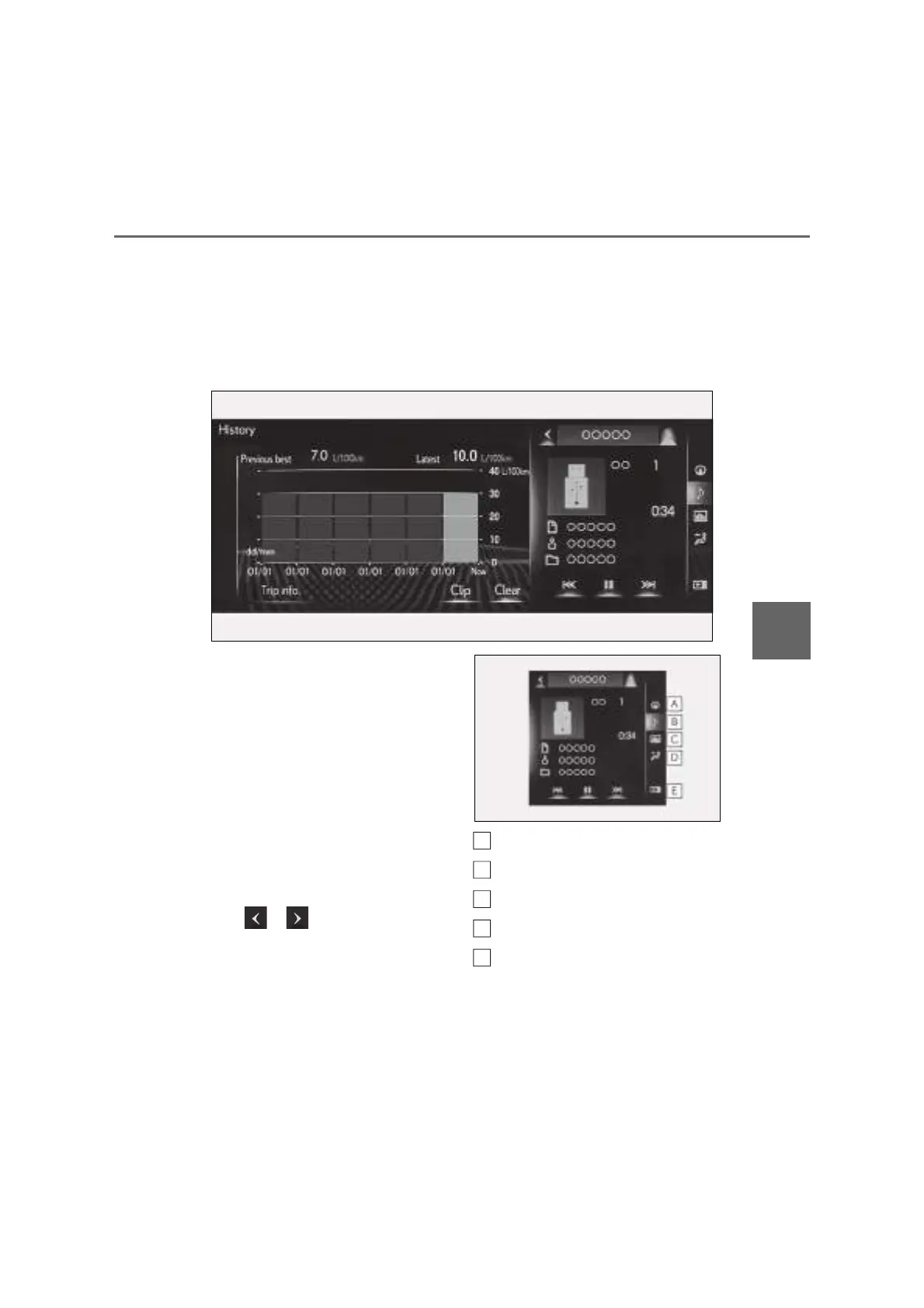 the fuel consumption information screen is being displayed. The large screen on