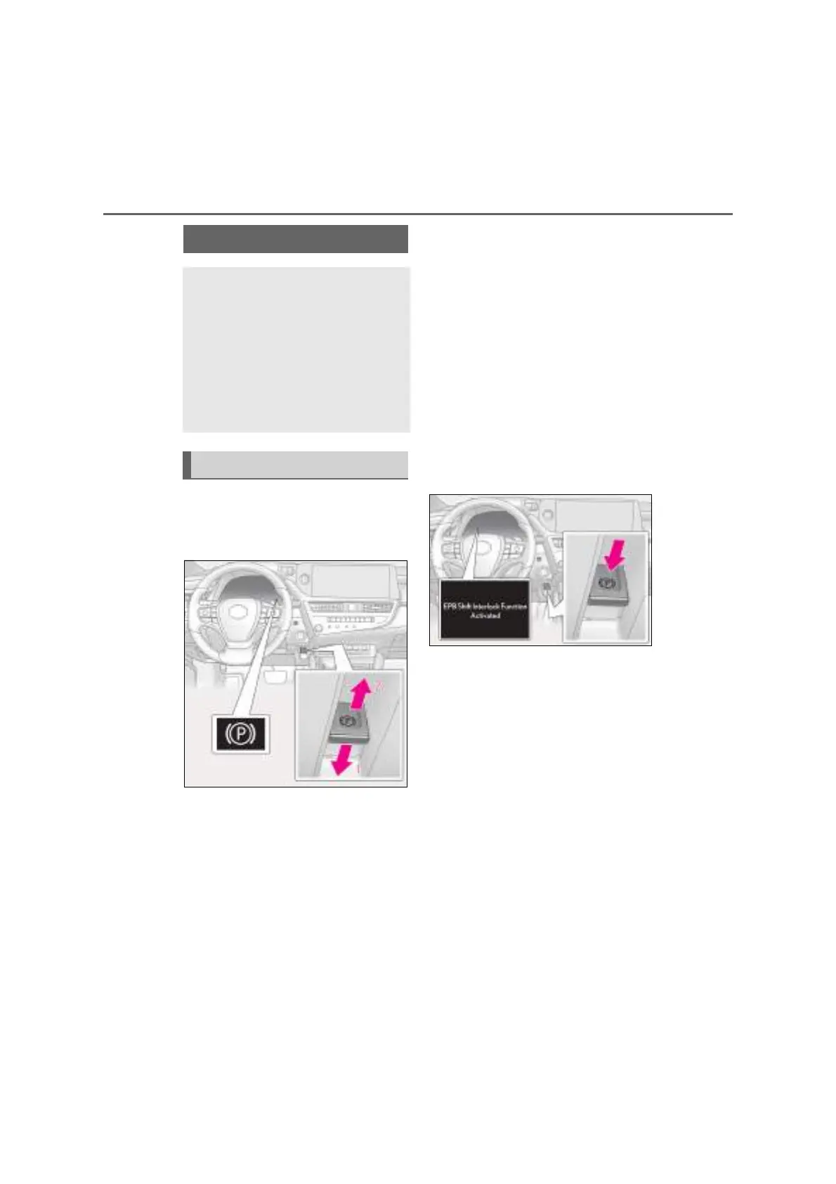 • Operate the parking brake switch while